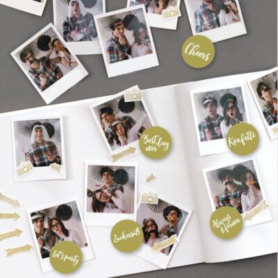 Sehr beliebt sind nach wie vor Gästebücher mit Fotos von euren Gästen. Dafür benötigt ihr lediglich eine Polaroid-Kamera oder einen Polaroid-Drucker sowie eine Möglichkeit, die Bilder hübsch aufzubewahren.