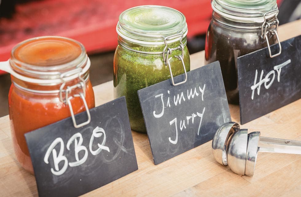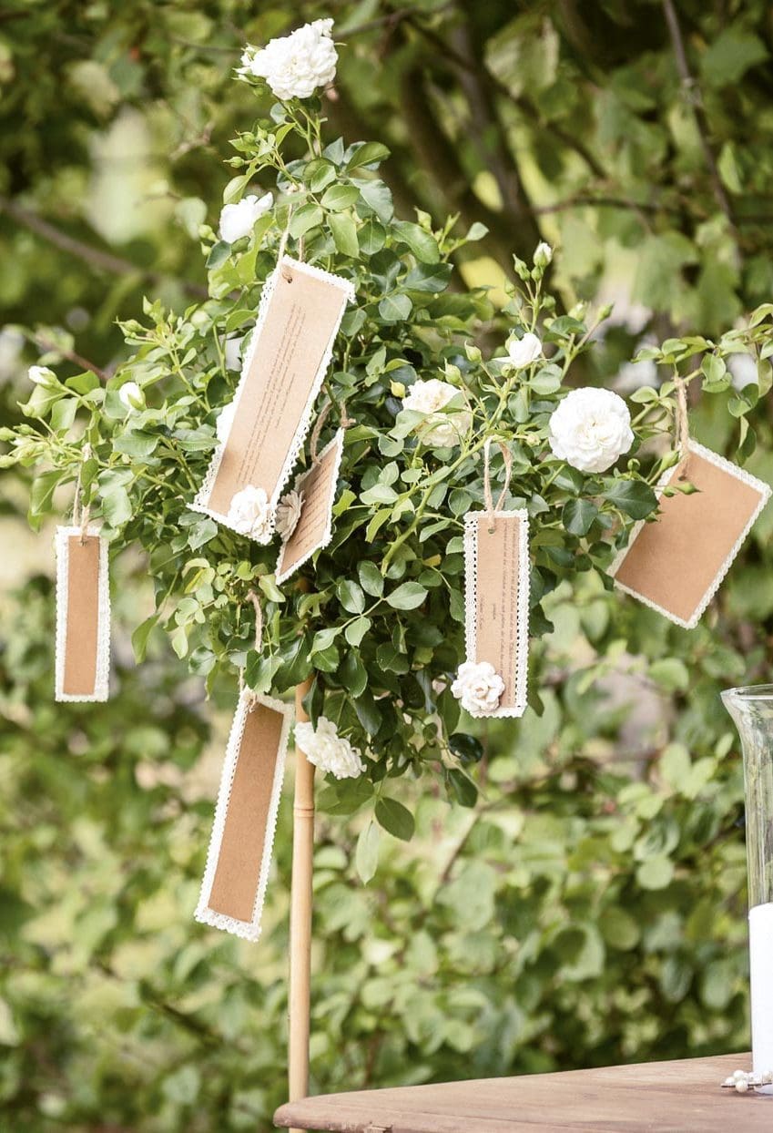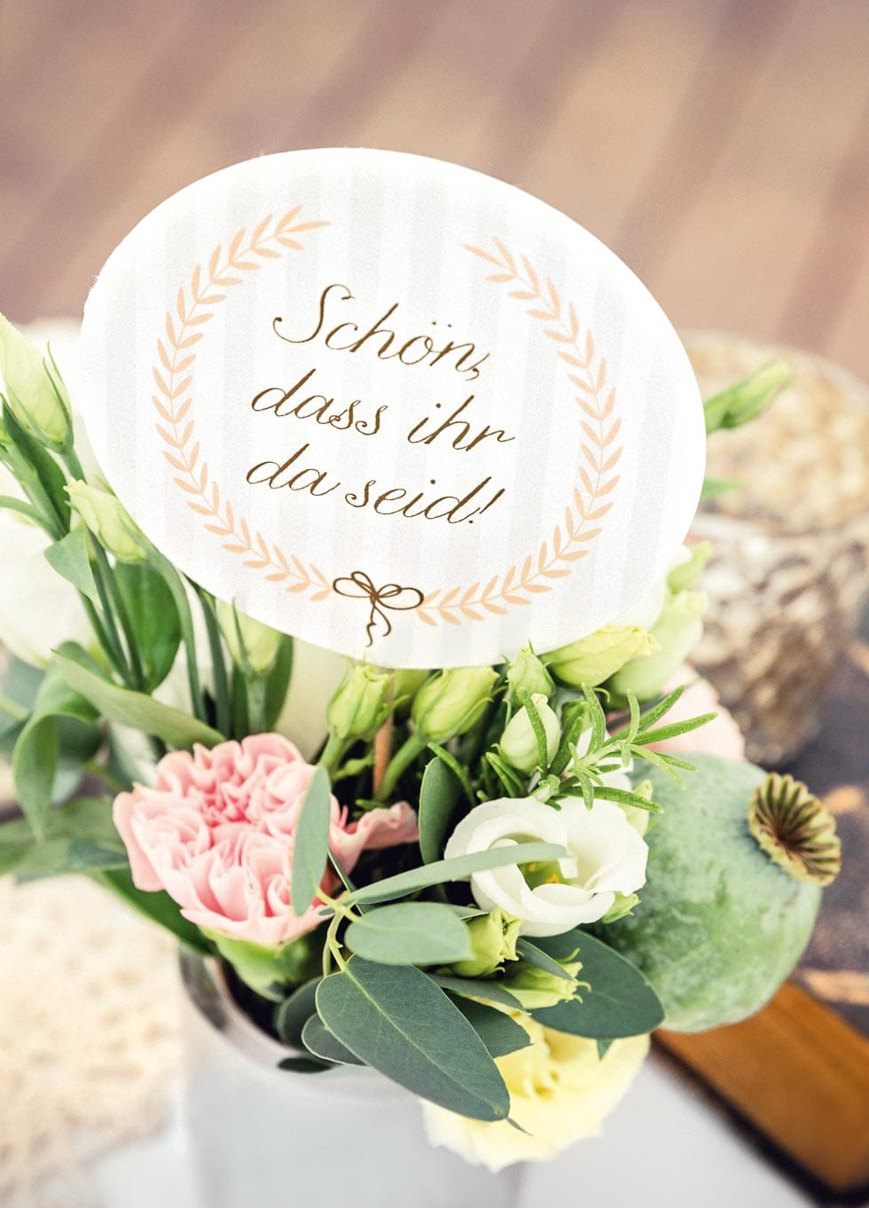 „Wir haben kleine Weckgläschen für jeden Gast gekauft und für die Männer ein Chilisalz und für die Frauen ein Rosmarinsalz mit eigenen Kräutern aus unserem Garten gemacht. Die Kinder haben M&M‘s in ihre Gläser bekommen. Diese Gläschen dienten mit den daran befestigten Hangtags auch gleichzeitig als Platzkärtchen.“