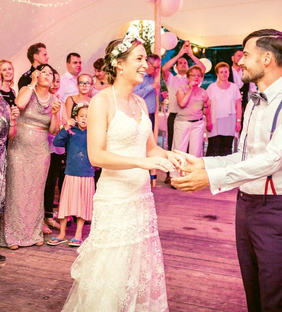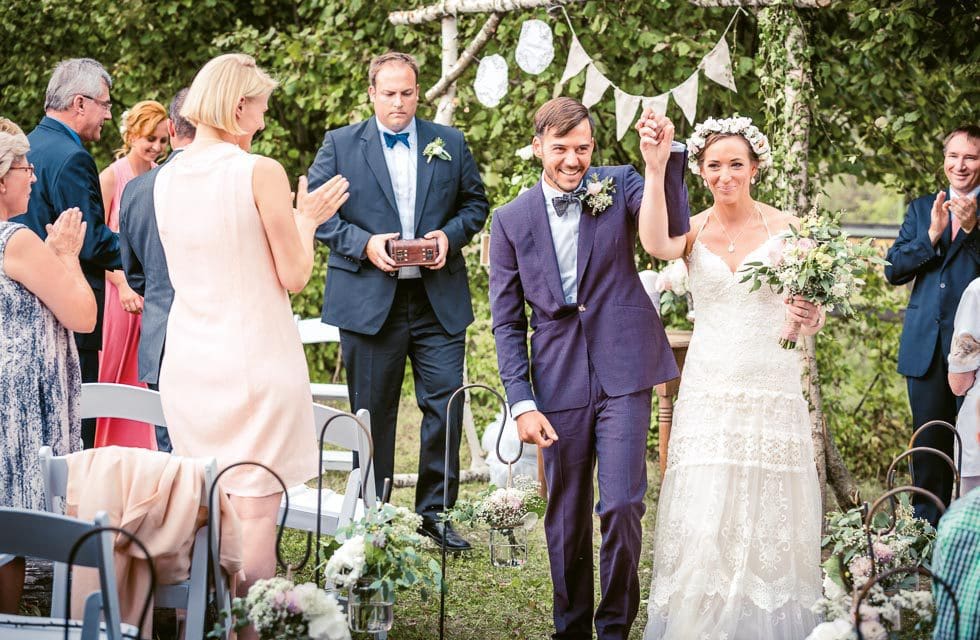 Letztlich hat sich die Zitterpartie mehr als gelohnt. Die beiden wurden mit dem perfekten Sommertag belohnt. „Im Nachhinein können wir völlig überzeugt sagen, dass dies unsere Traumhochzeit war, die wir uns schöner nicht hätten wünschen können.