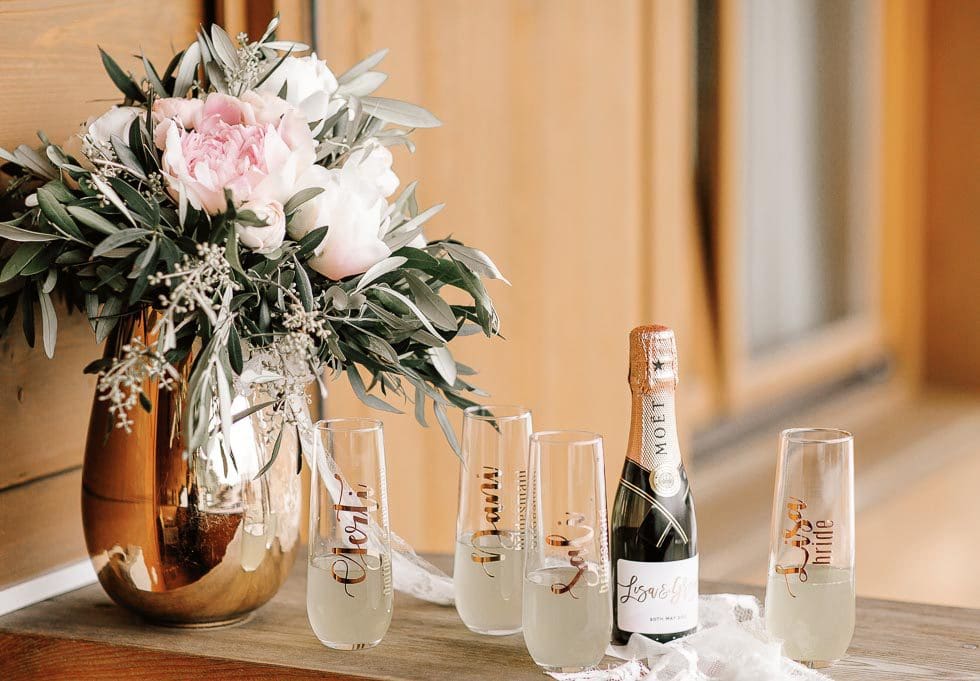 Verwöhnt euch und alle Anwesenden mit Getränken und Snacks. Üblicherweise wird beim Getting Ready vor der Hochzeit bereits für alle eine Flasche Sekt oder Secco geköpft. Das macht den Moment umso entspannter.