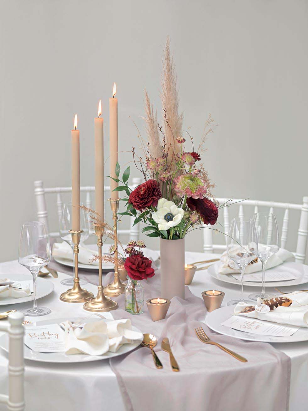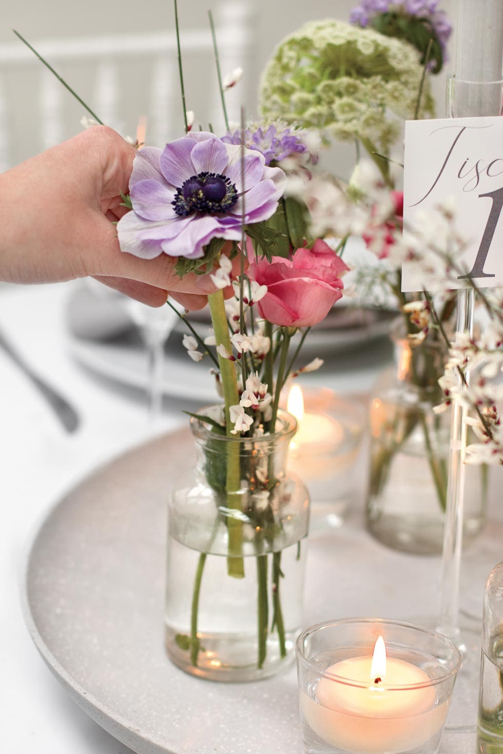 3 | Elegante puristische Tischdeko mit einzelnen Blumen