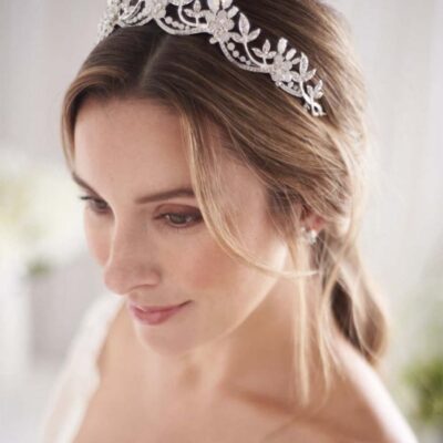Wenn ihr zur Trauung einen Schleier tragt, könnt ihr mit einem Haarkamm als Haarschmuck euer Styling für den Abend im Handumdrehen ändern: Nehmt den Schleier ab und ergänzt stattdessen einen Haarkamm.
