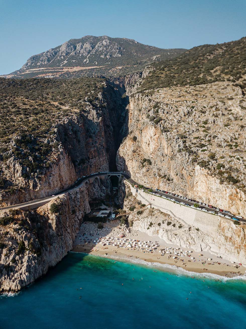 - Auf dem Olympos-Berg (Tahtalı Dağı) in Kemer, auf dem laut Mythologie die Götter Zeus und Hera wohnen, umgeben von einem Tal mit antiken Ruinen, Wäldern und direktem Meerblick