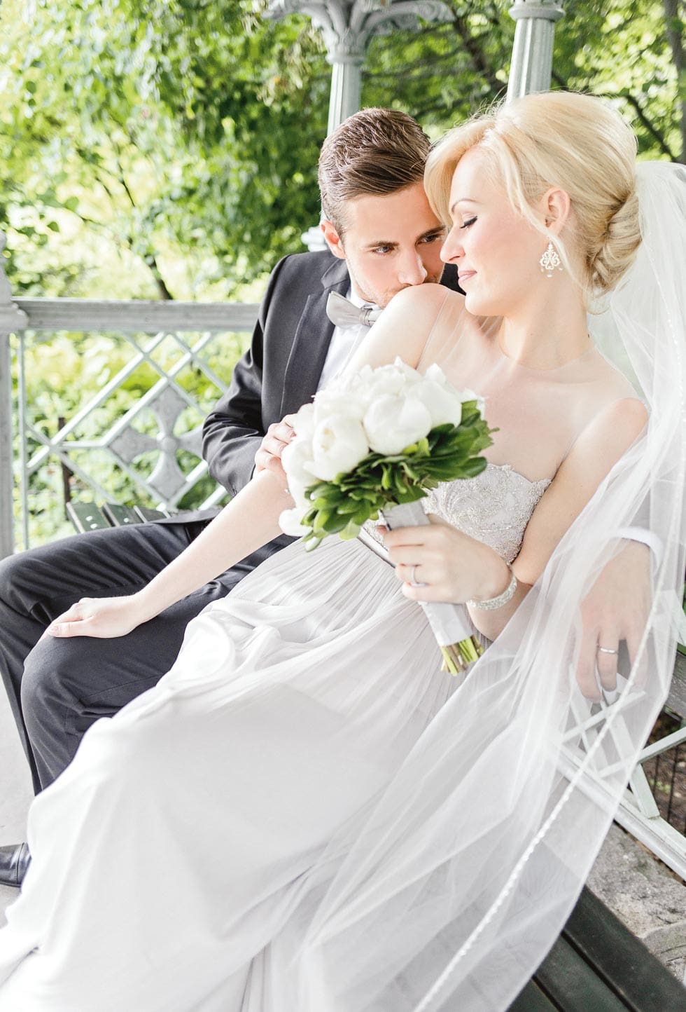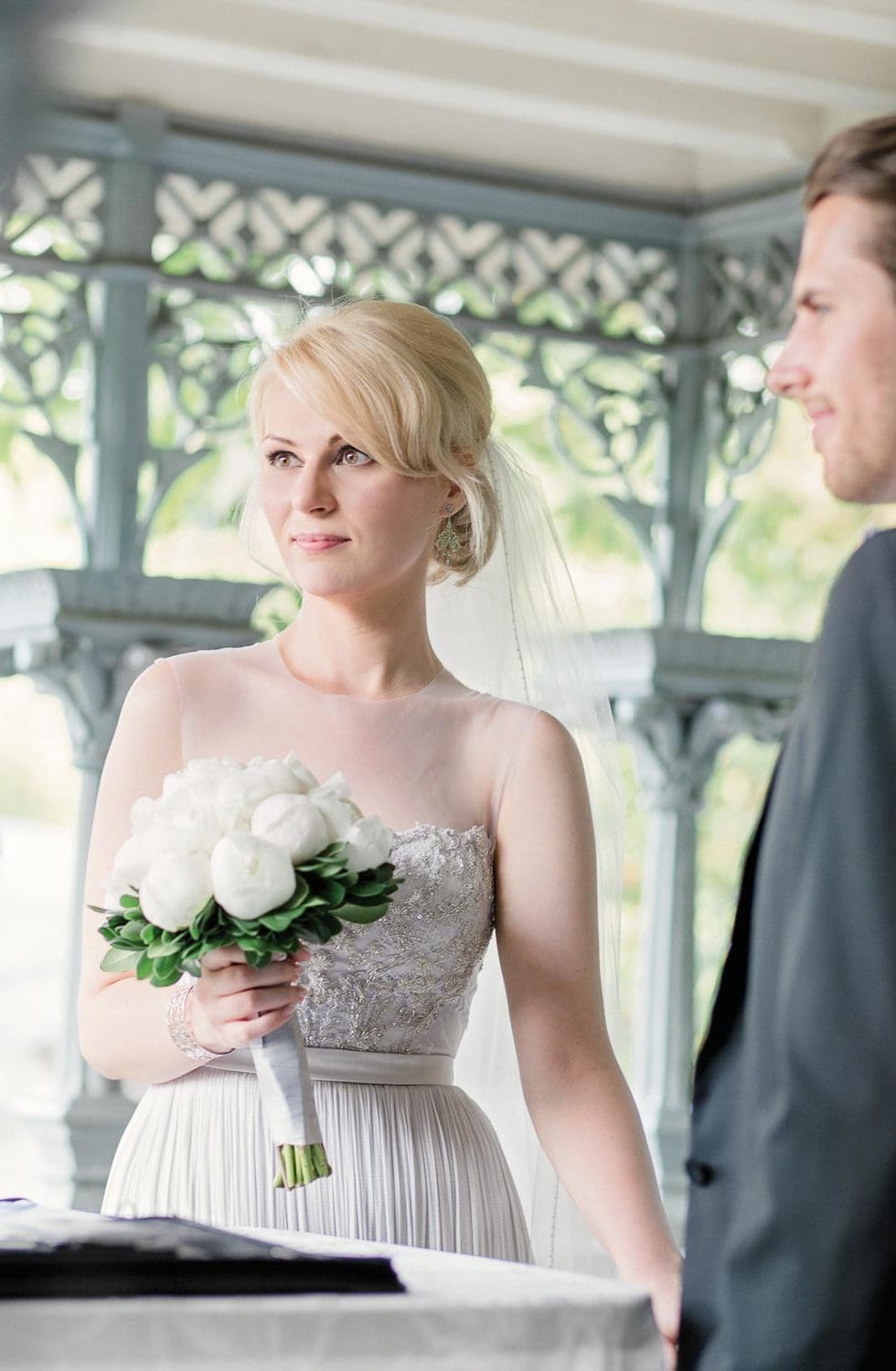 „Ich wartete einige Schritte vom Pavillon entfernt und wurde von zahlreichen New Yorkern und Touristen beglückwünscht. Dann ging es los, ich ging die wichtigsten Schritte meines Lebens – die emotionalsten Schritte und die Nervösesten “, beschreibt Ella immer noch voller Aufregung. „Ich sah Giona im Pavillon stehen. ‚Du siehst wunderschön aus‘ waren seine ersten Worte und ich sah in seinen leuchtend blauen Augen, wie ernst es ihm war.