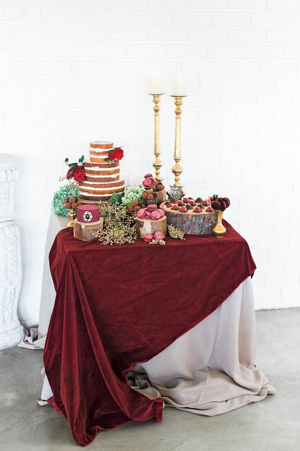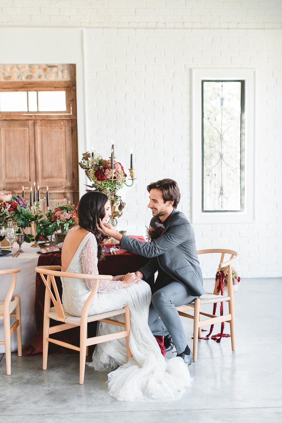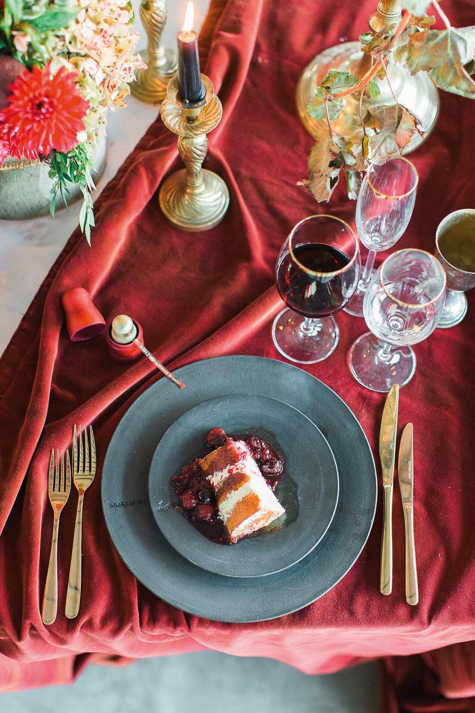 Das Geheimnis dieses Styleshoots ist der gekonnte Umgang mit der Farbpalette aus Aubergine, erdigem Taube, luxuriösen Beerentönen und Bronze, die als Kontrast zur sonst hellen Umgebung einen perfekten Farbklecks ergeben.