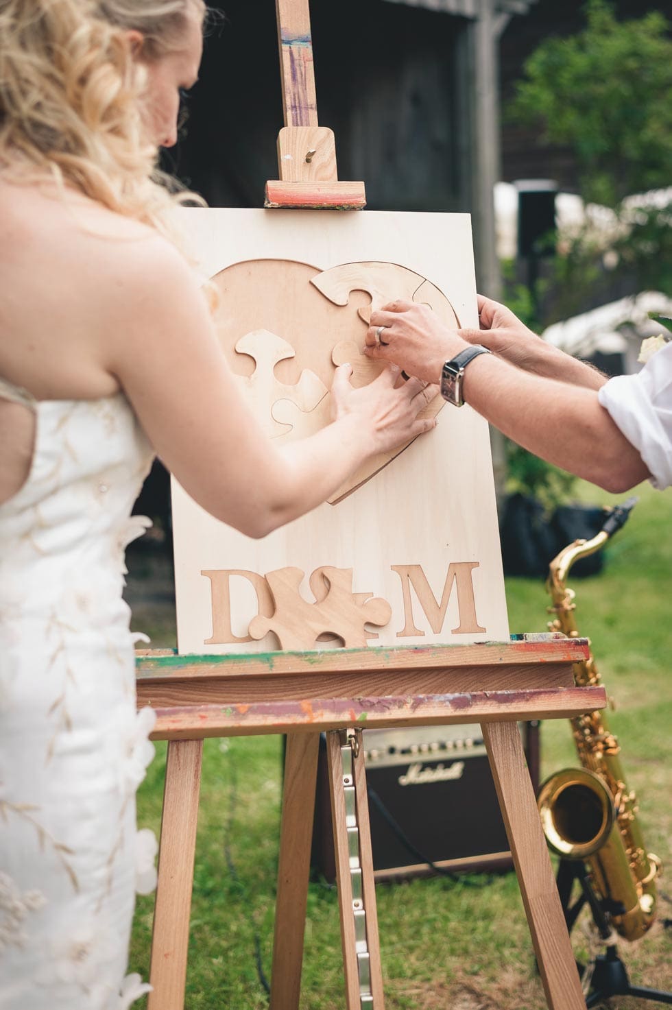 "Einer der schönsten Momente war es die ersten kreativen Antwortkarten unserer Gäste zu erhalten, nachdem wir die Einladungspäckchen fertiggestellt und versandt hatten. Auch das Zusammenstellen der vielen Kleinigkeiten, die das Ganze so besonders machen, hat uns riesigen Spaß gemacht: Die CDs als Gastgeschenk bedruckt mit unserem Logo, die Kameras, die Stifte – einfach alles.
