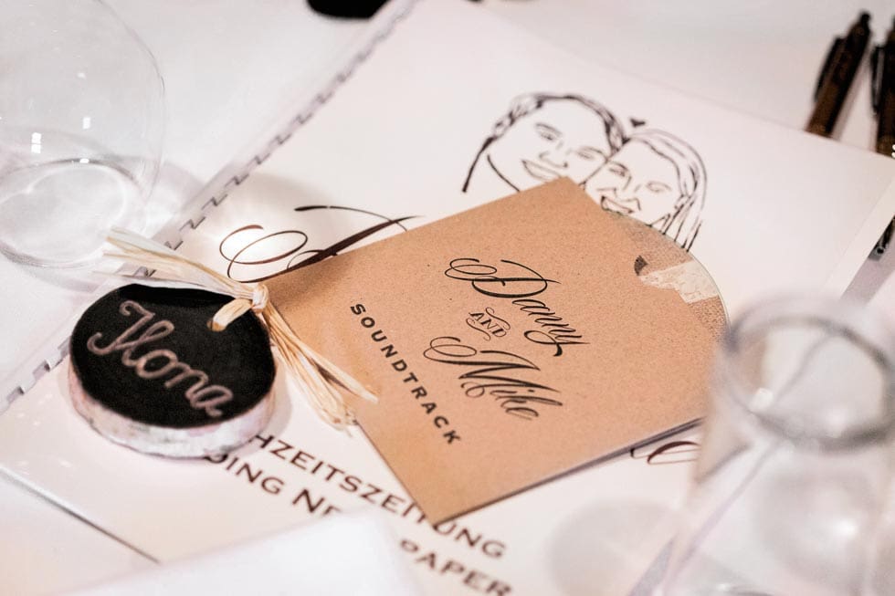 „Als wir zum Jahreswechsel die Save-the-Date-Karten verschicken wollten, waren wir uns noch nicht über die Gestaltung der gesamten Papeterie einig. Deshalb haben wir Kalender verschickt, die sehr praktisch waren, weil diese unsere Gäste während des gesamten Jahres begleiteten."