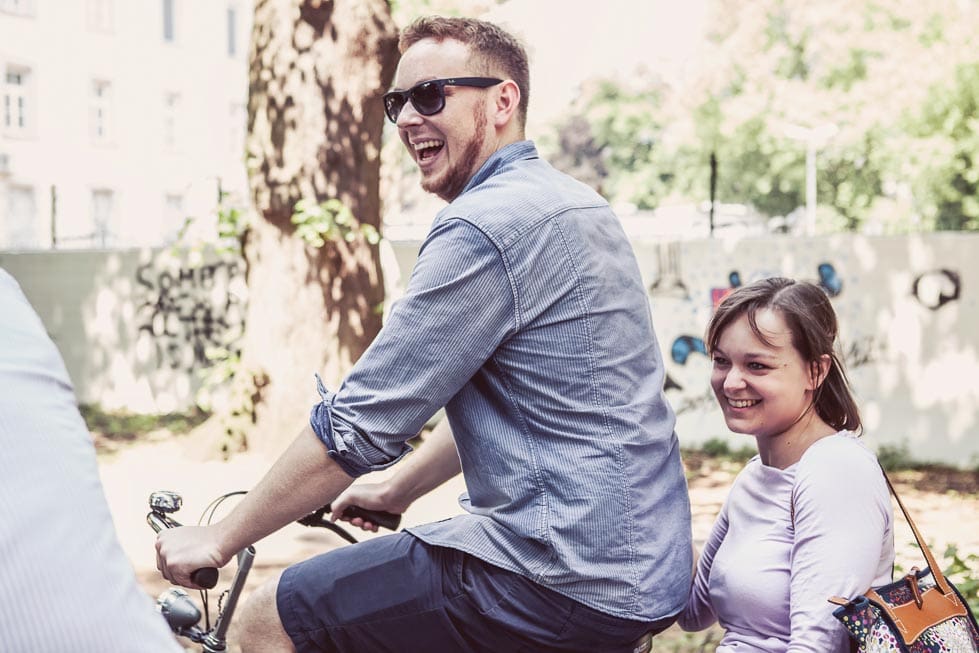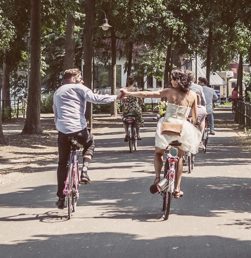 Nach der standesamtlichen Trauung haben die beiden mit allen Gästen eine Radtour um die Münsteraner Promenade gemacht.