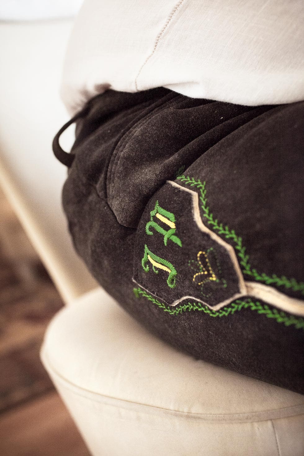 Rundet euer Outfit mit einer schicken Trachtenweste oder einem Trachtensakko sowie mit einem feinen Trachtenhemd ab. Und lasst ihr euch eure Lederhose zur Hochzeit auf Maß schneidern, könnt ihr sie zusätzlich mit euren Initialen des Bräutigams wie im Beispiel oben besticken lassen.