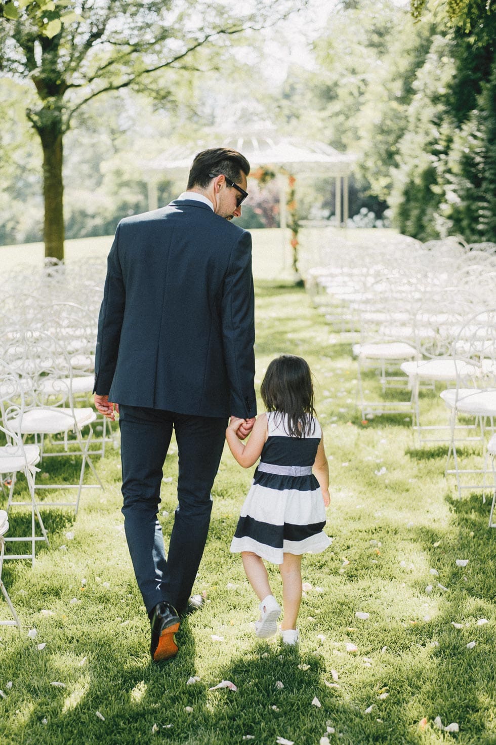 Wer möchte, kann den Hochzeitsfächern auch ein paar große Schirme aus Papier ergänzen, die euren Gästen bei brennender Sonne Schatten spenden.