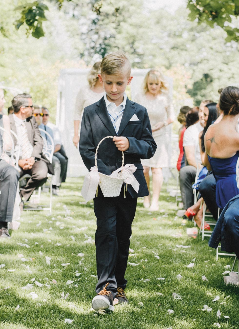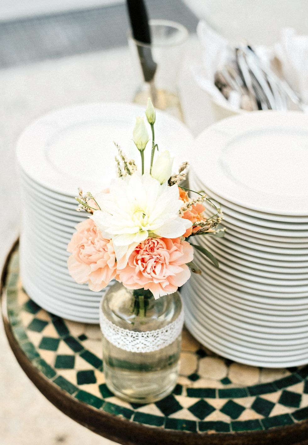 Heiratet ihr im Freien, platziert die Fächer bei eurer Hochzeit am besten in einem Korb auf einem Tisch oder auf einem Podest am Eingang der Trauung.
