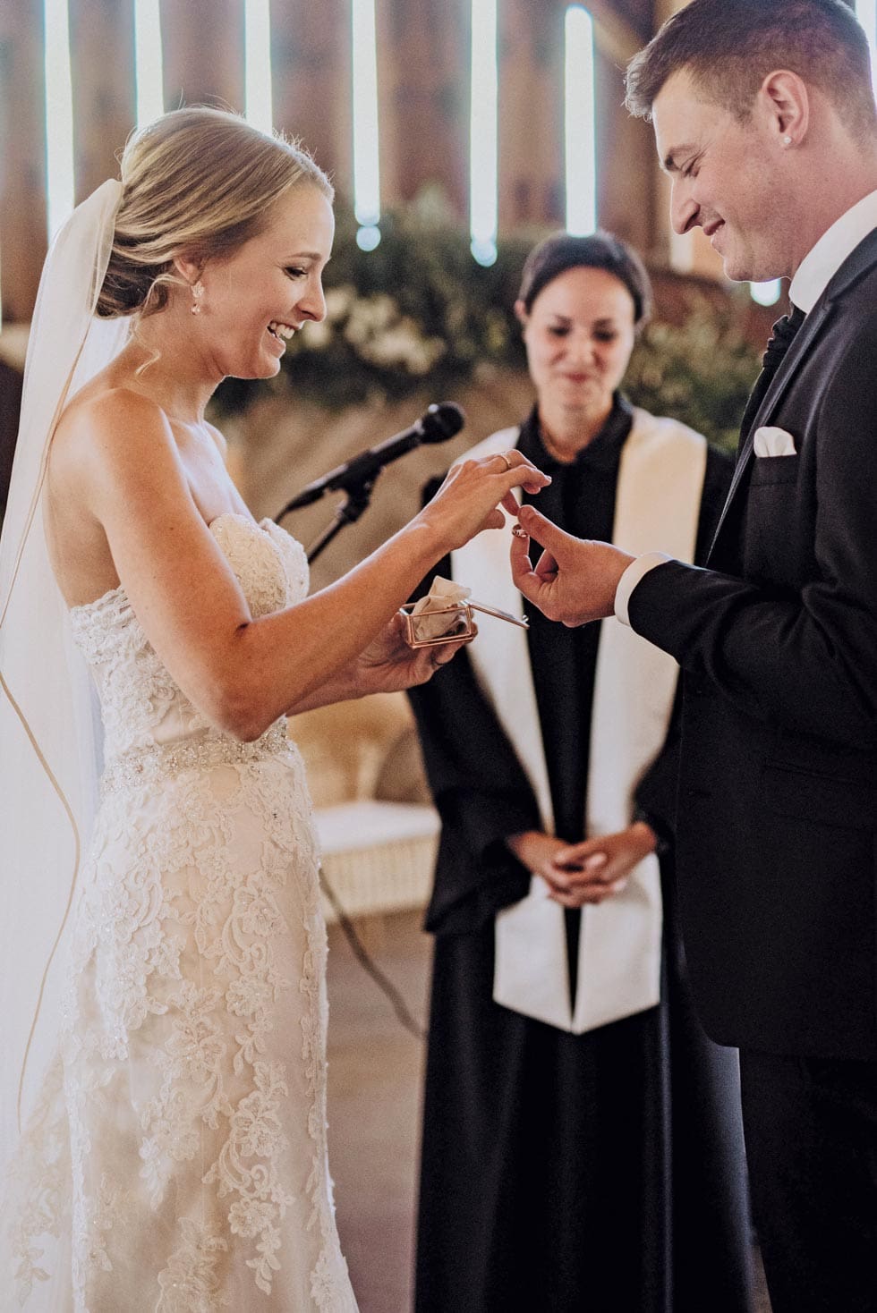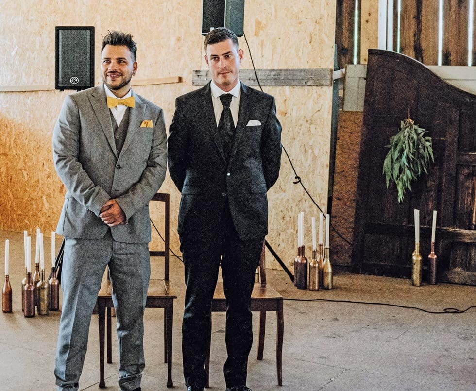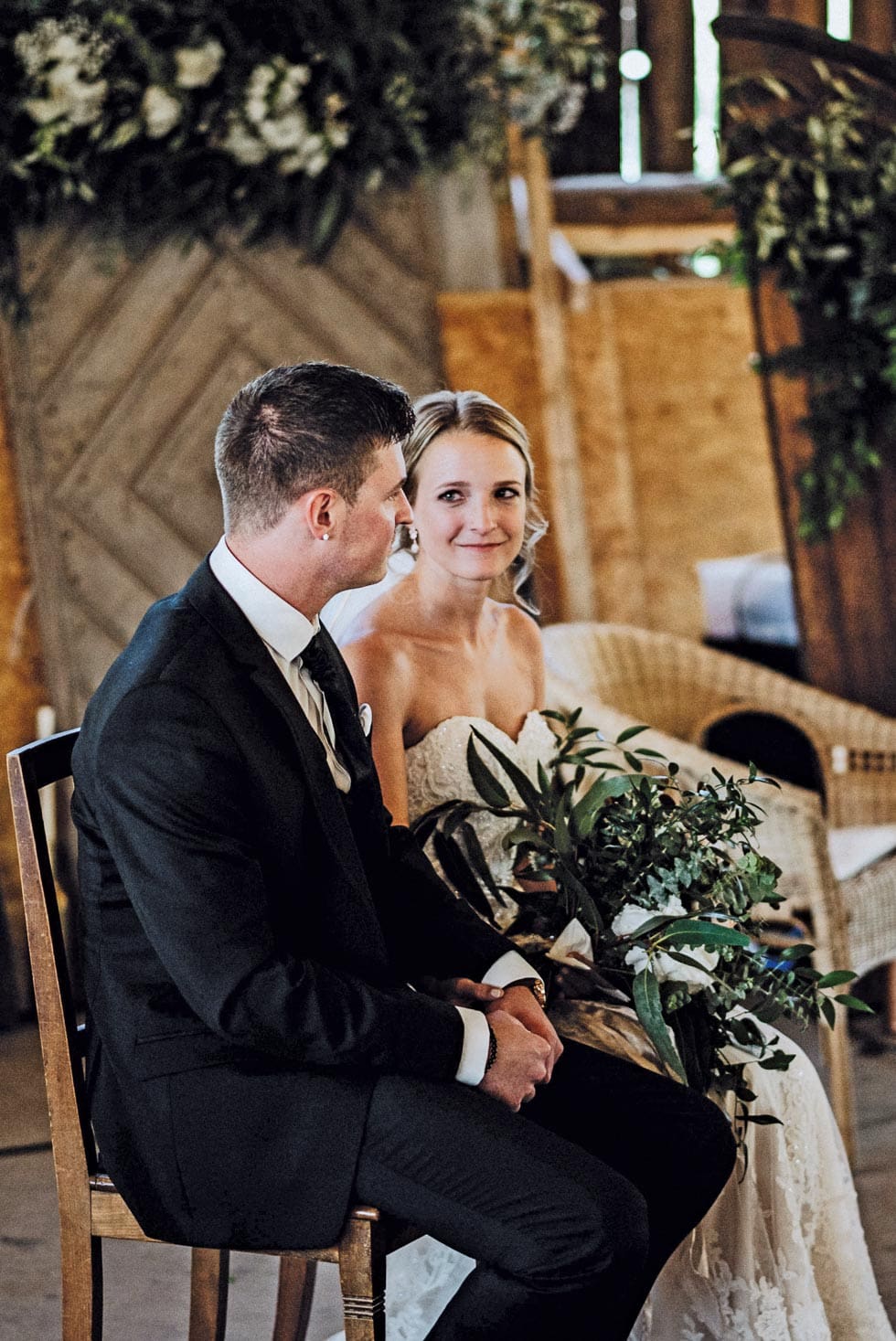 „Für uns war es vor allem schwierig, eine leere Scheune als Traulocation zu haben und alles selbst organisieren zu müssen: Von Bänken zum Sitzen über Raumtrennung bis hin zu allen Details, die ein schönes Ambiente schaffen. Dabei die Vorstellungskraft zu haben, wie es werden würde und ob unsere Ideen überhaupt umsetzbar waren, war die größte Herausforderung, die uns viele Telefonate, Recherchen und Nerven gekostet hat."