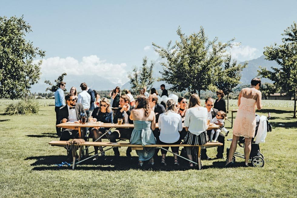 Für das Catering haben die beiden einen Pizza und Pastawagen gebucht. „Wir lieben Pizza, Pasta und Salat über alles und alle fanden es großartig! Für das Dessert haben alle Gäste etwas beigesteuert. Das war genau richtig!“, freuen sie sich.