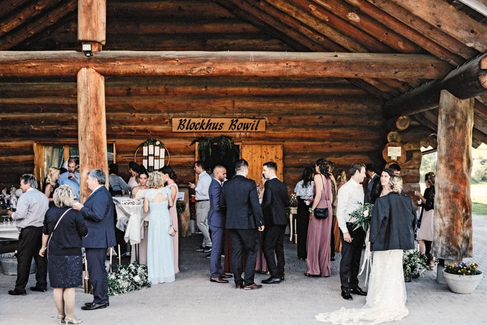 Nach der Trauung um 15 Uhr haben die beiden mit allen Gästen einen ausgedehnten Sektempfang genossen, um mit allen Anwesenden eine entspannte Zeit zu verbringen. Erst um halb sechs brach das Brautpaar mit allen Festgäste zum Blockhaus auf, wo die Hochzeitsfeier stattfand.