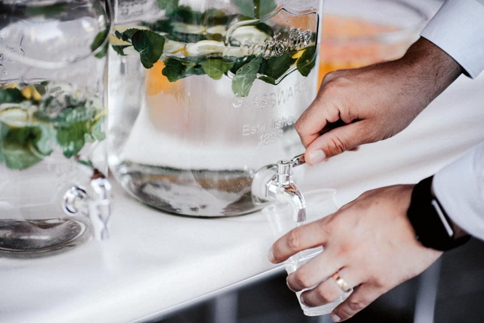 Vom Essen über die Locations bis hin zu unserem Outfit oder dem Sektempfang – einfach überall. Als die Locations feststanden, war uns bewusst, dass wir einiges an Mobiliar, Deko und vielem mehr organisieren mussten, um unsere Vorstellungen umsetzen zu können."