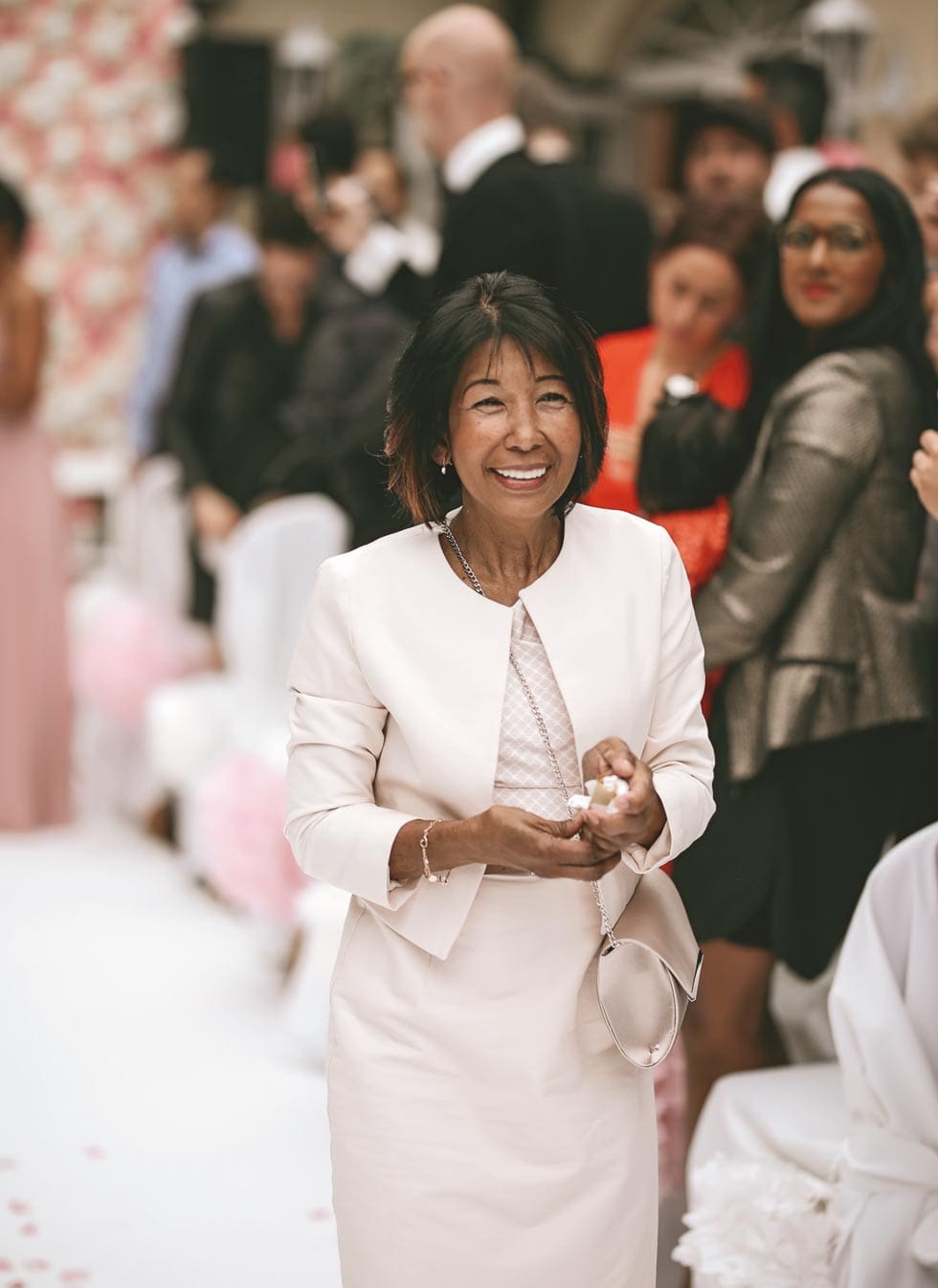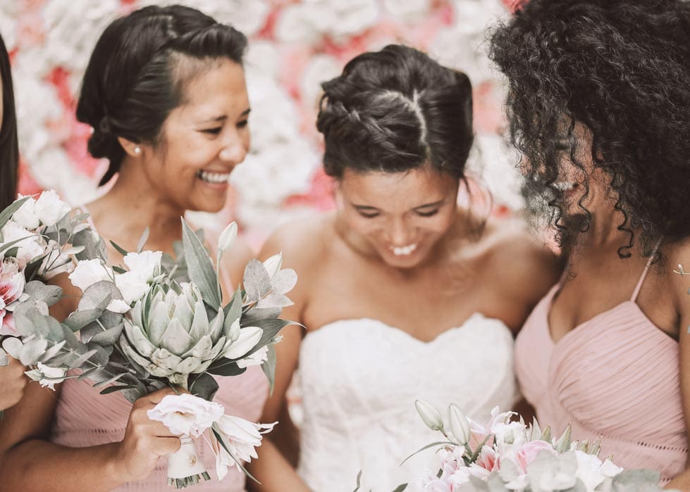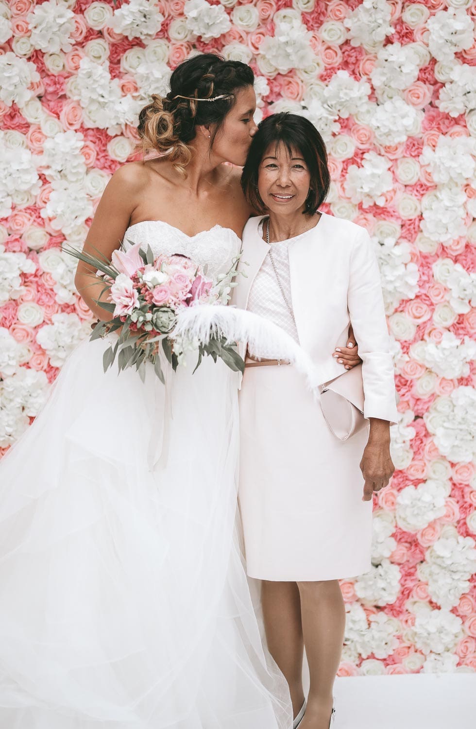 „Das Ergebnis war allerdings phänomenal! Trotz Regens erstrahlte der lichtdurchflutete Raum – geschmückt mit einer Blumenwand von Nelliflower. Und als Désirée Korb mit ihrer zauberhaften Traurede begann, waren alle doppelt verzaubert.“