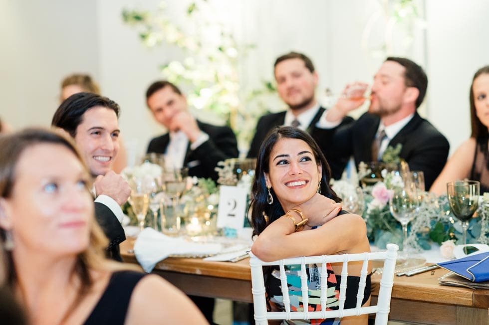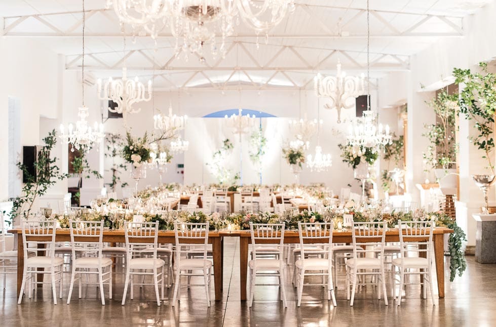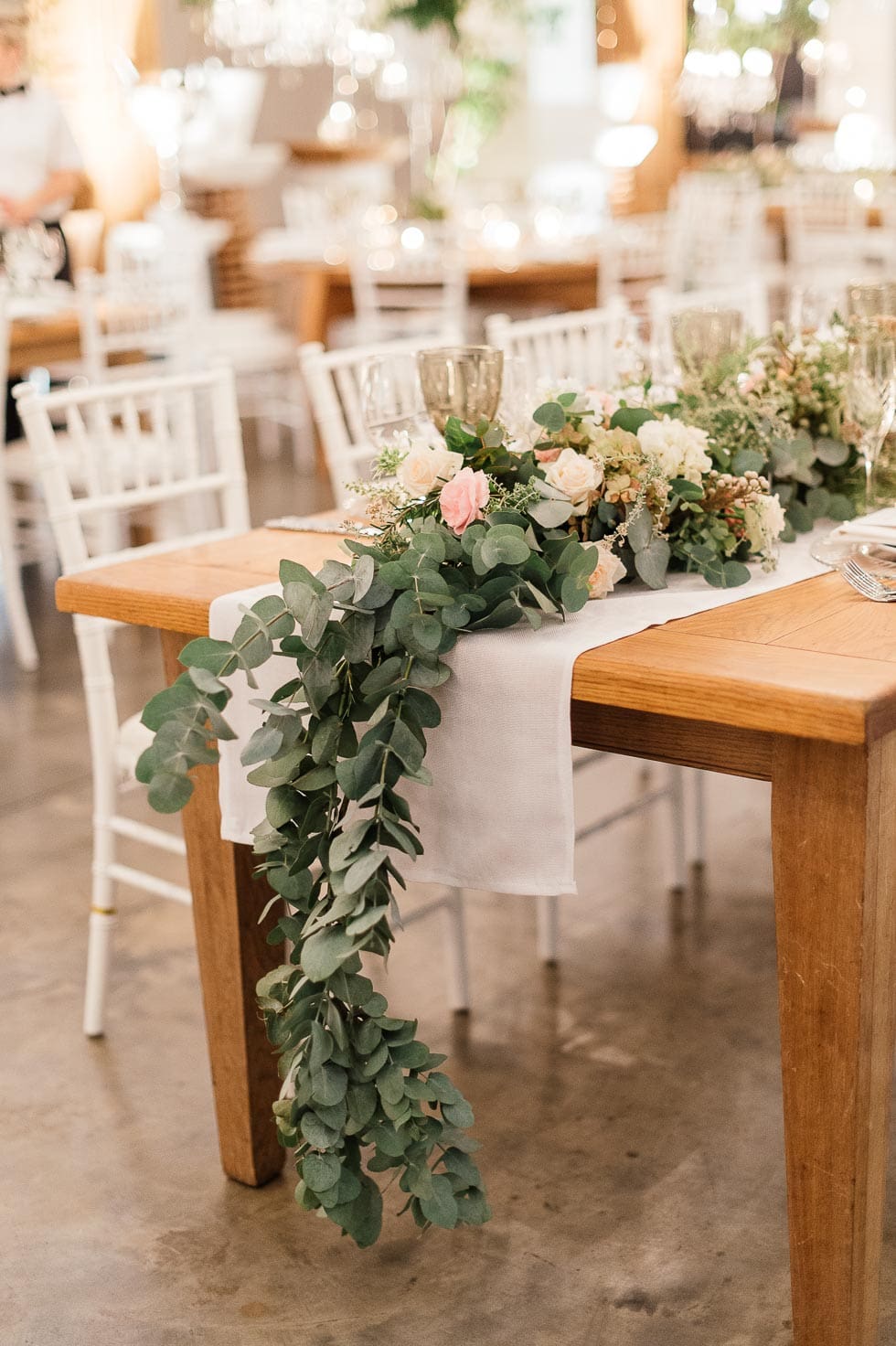 „Unsere Hochzeit sollte modern und klassisch sein mit vielen natürlichen Elementen.“ Ihre Location war mit den Bäumen an den Wänden und den Kerzenleuchtern, die in unterschiedlichen Höhen von der Decke hingen, bereits mehr als perfekt und einfach atemberaubend.