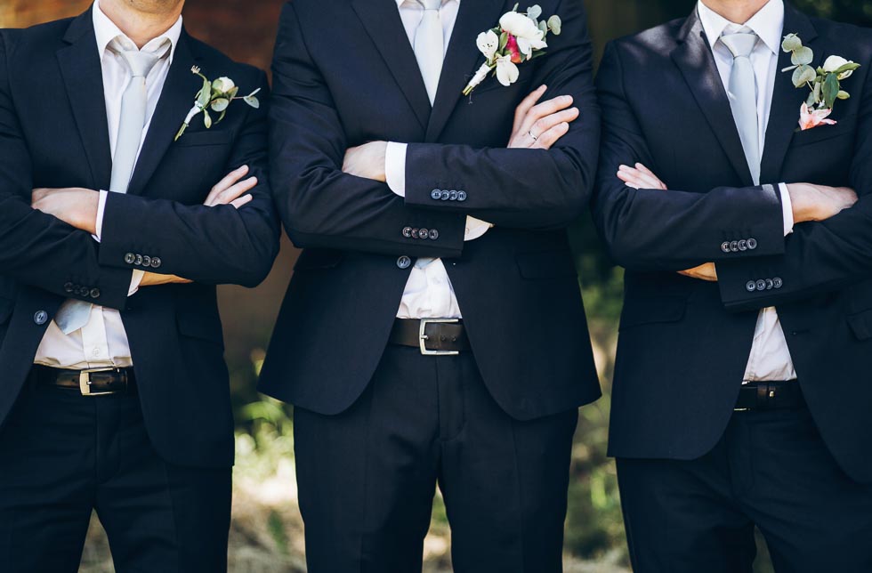 Bräutigam und Groomsmen im gleichen Look und doch unterschiedlich festlich gestylt
