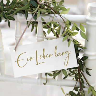Ganz ehrlich: Ein liebevoll gestalteter Hochzeitsbanner ist fast zu schade, um ihn zu durchschneiden. Nutzt ihn deshalb beispielsweise beim Polterabend als Gästebuch und lasst alle darauf unterschreiben.