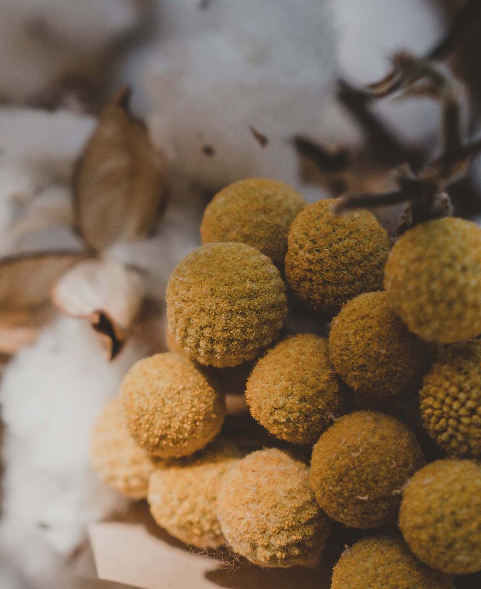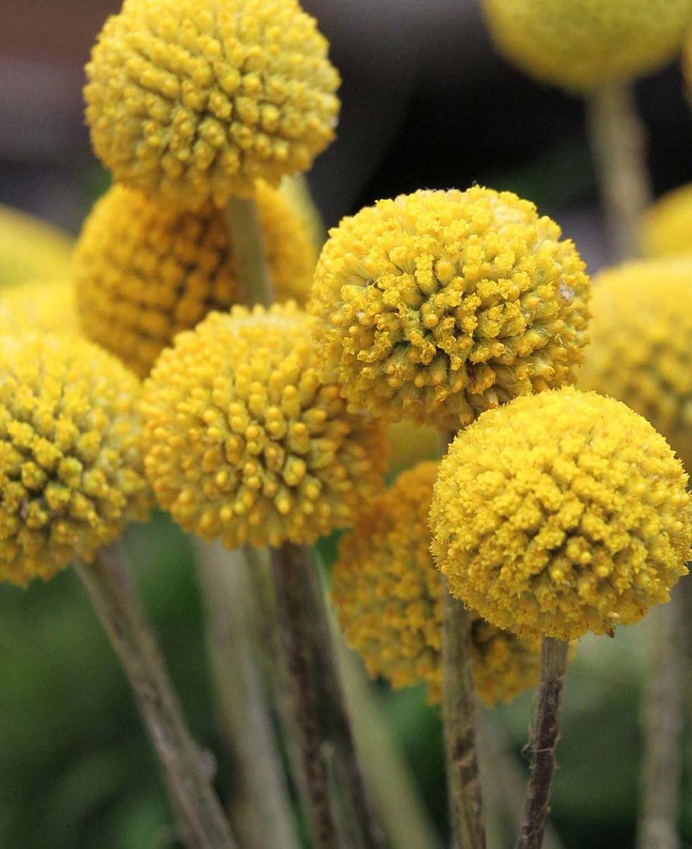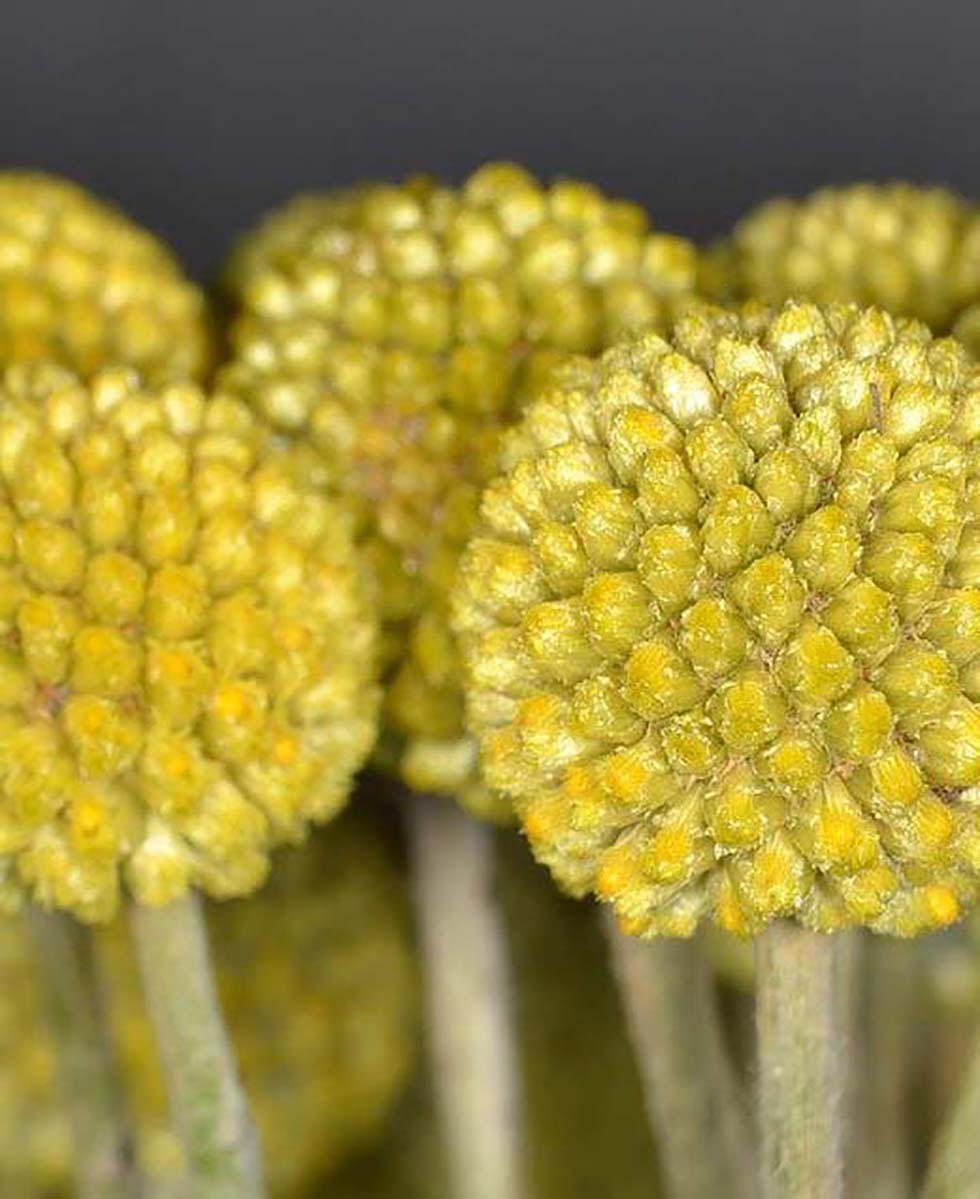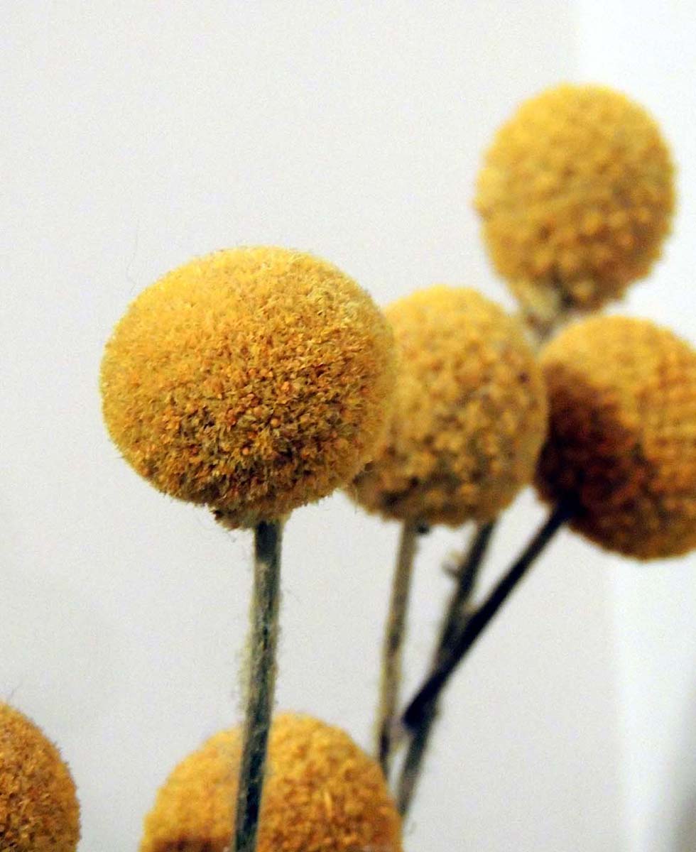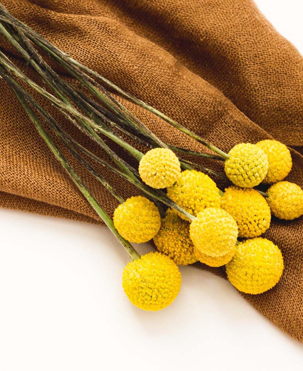 Craspedien haben kleine gelbe und kugelförmige Blüten, die von Mai bis Oktober beim Floristen erhältlich sind. Sie sind die trendige Ergänzung für alle sommerlichen Sträuße und Tischdekos mit cremefarbenen oder weißen Blüten.