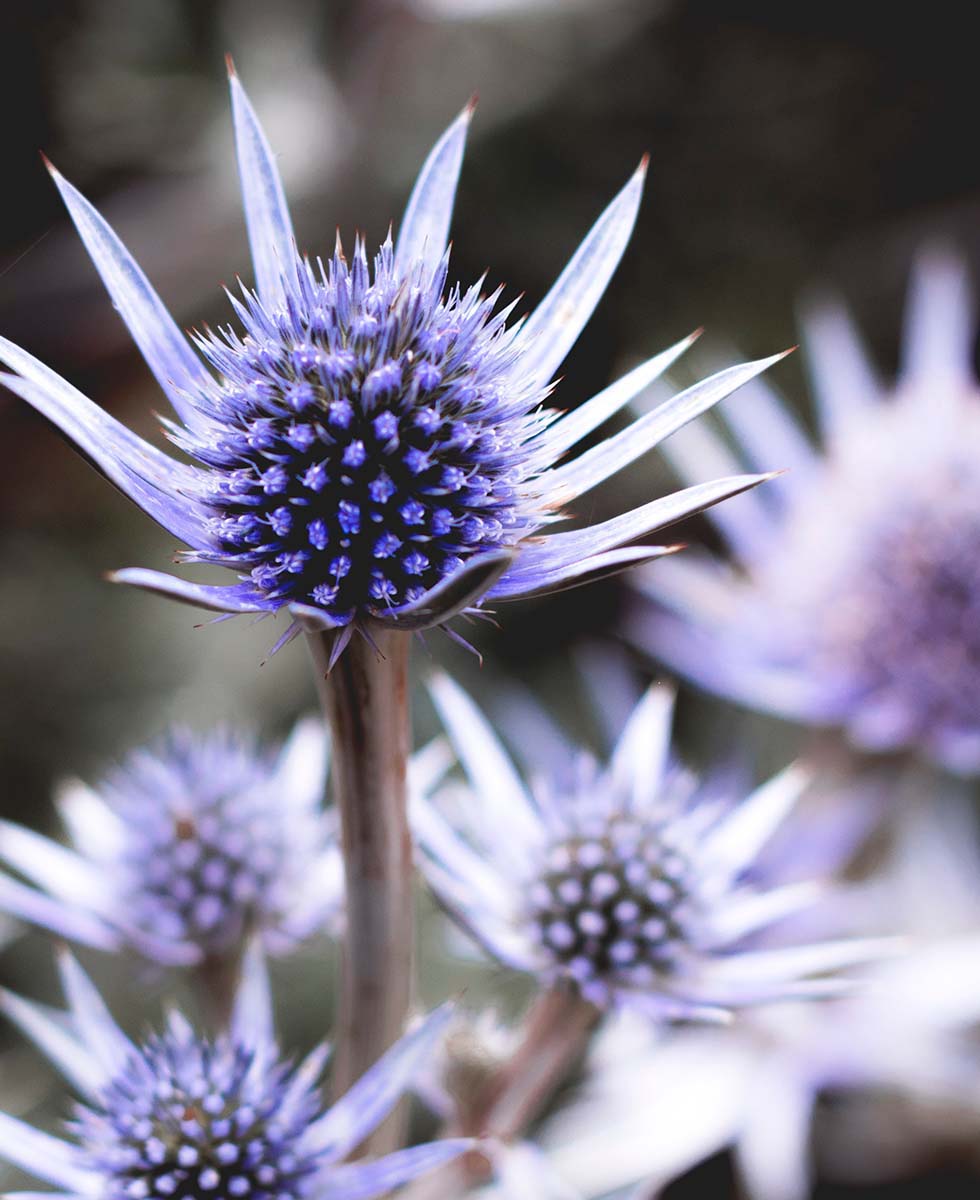 Eigentlich würde man davon ausgehen, dass eine Distel stachelig und hart ist, aber die Edeldistel ist extrem weich und könnte fast als flauschig bezeichnet werden. Mit ihrem wunderschönen Stahlblau ergänzt sie einen modernen Touch zu den verschiedensten Hochzeitsblumen und hat sich in den letzten Jahren absolut etabliert.