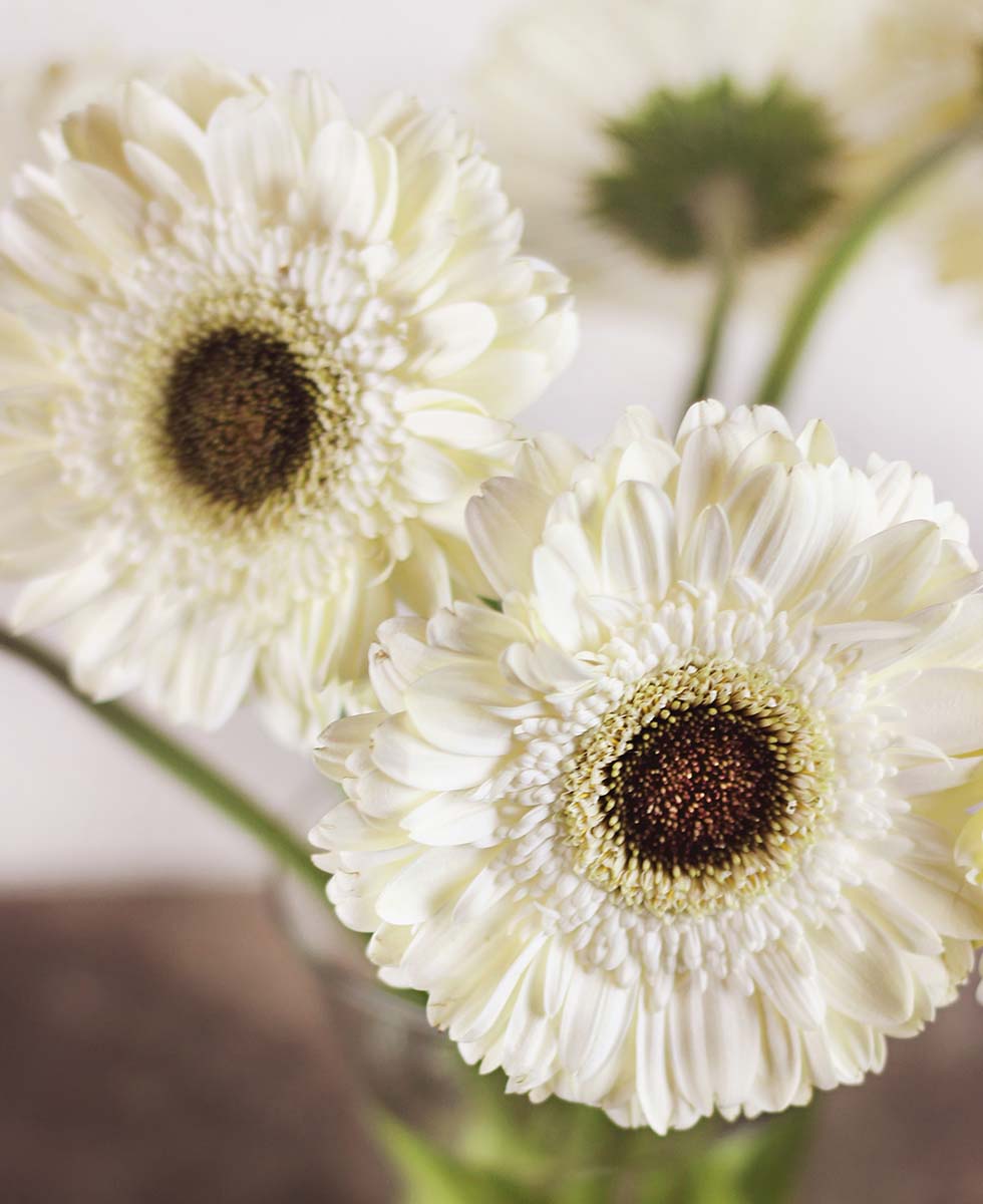 Gerbera, Rosen, Schleierkraut, Alstromeria, Lysianthus, Chrysanthemen, Lilien, Johanniskraut, Flammenblume, Nelken, Orchideen, Hortensien, Christrosen, Amaryllis und Protea aber auch Eukalyptus, Olivenblätter und Sukkulenten sind die Hochzeitsblumen, die ihr in jeder Jahreszeit zu den saisonalen Blüten kombinieren könnt.