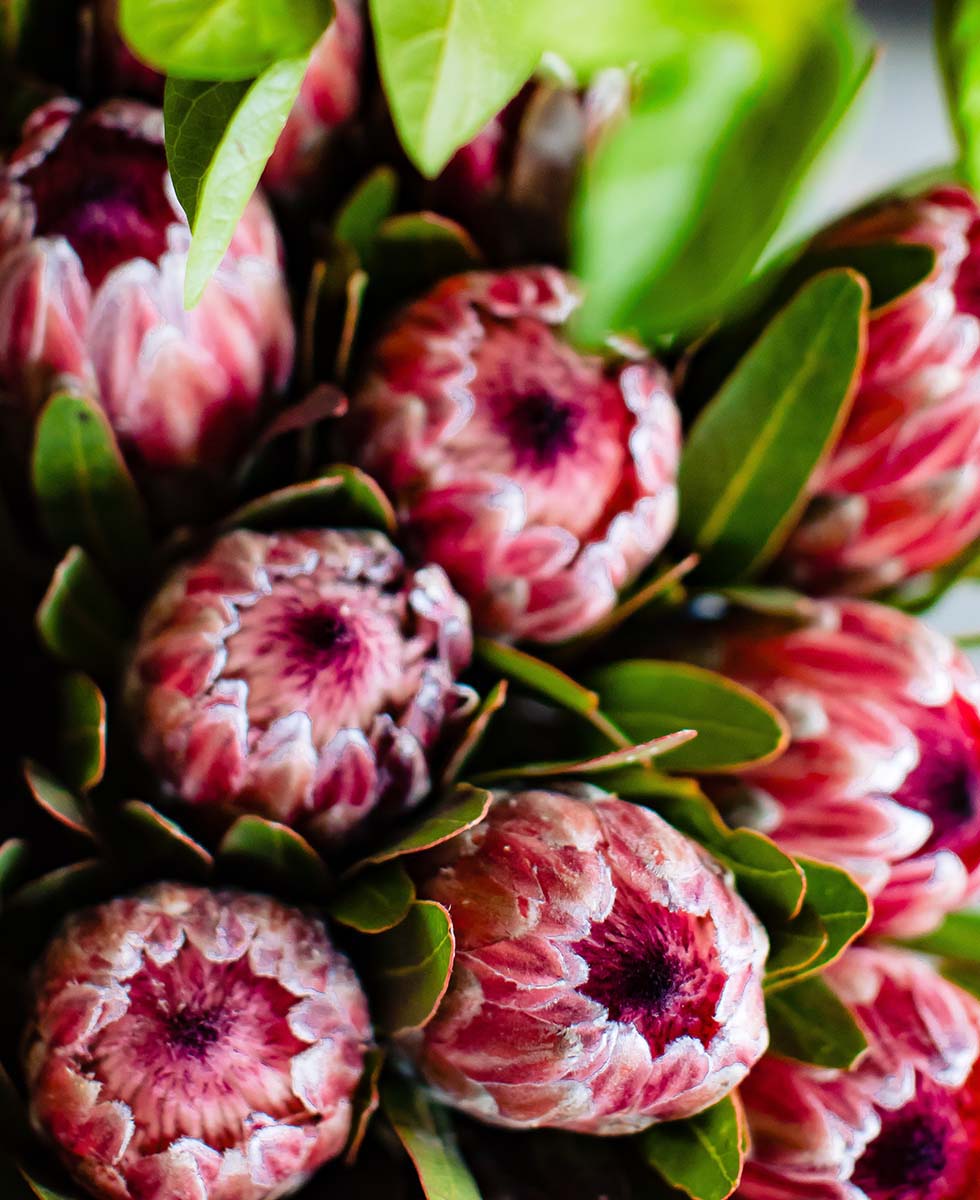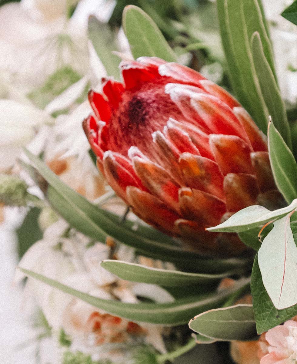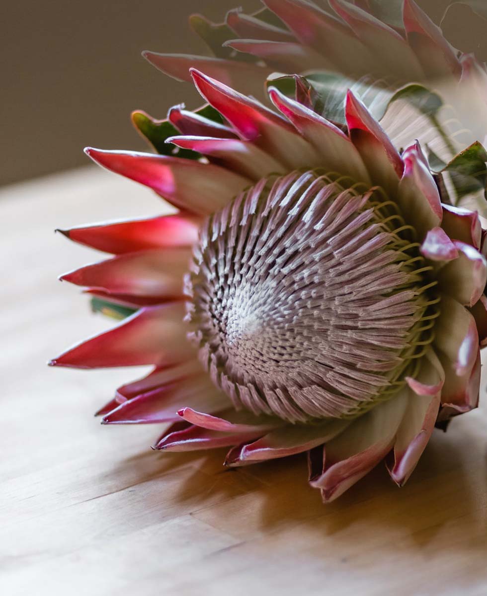 Die Protea ist die Nationalblume Afrikas und ist die erste Wahl, wenn ihr euch einen absolut außergewöhnlichen großen Brautstrauß mit exotischem Kick wünscht. Erhältlich sind sie beim Floristen ab Herbst bis in den Frühling in den verschiedensten Farbtönen und Blütenformen von Hellrosa bis Bordeauxrot.
