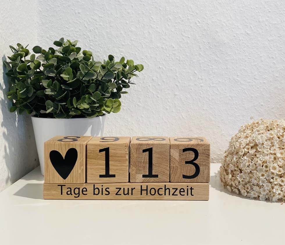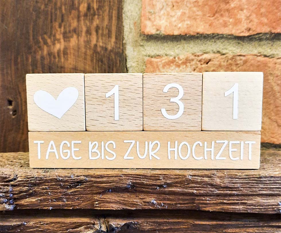 Holzblöcke mit "Tage bis zur Hochzeit"
