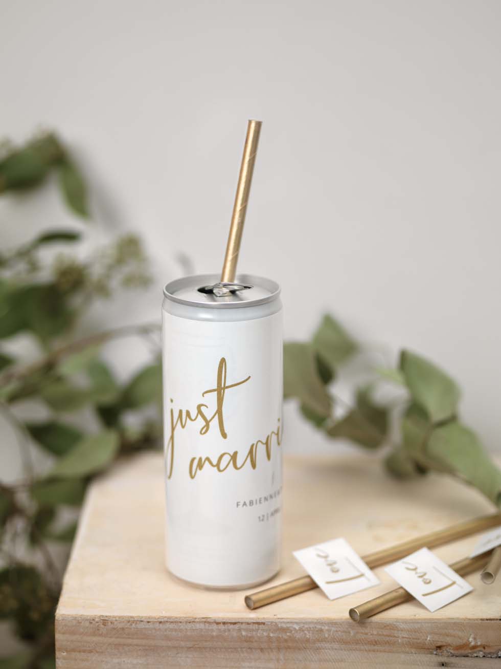 Weckt die Vorfreude auf besondere Weise und schickt euren Lieblingsmenschen eine Dose mit dem ersten Schluck eures Hochzeitstages – versehen mit den wichtigsten Infos oder QR-Code zur Hochzeitswebsite.