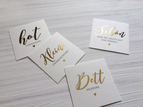 Ich kann Ihnen gar nicht sagen, was Sie uns damit für eine Freude gemacht haben und wir können es kaum erwarten, morgen schon die ersten Karten im Freundeskreis überreichen zu können!"