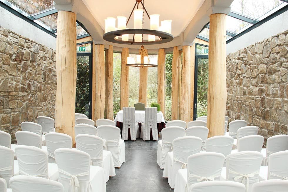 Das Confideum – eine lichtdurchflutete Kapelle aus Naturstein und Holz befindet sich abseits der Veranstaltungsräume im Park des Landhotels. Es bietet Ihnen Platz für bis zu 50 Personen und gibt Ihrer Trauung eine einzigartige Atmosphäre.