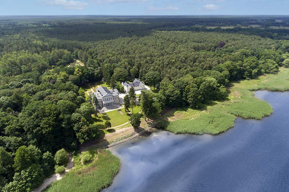 Das aufwendig renovierte Schloss Manowce aus dem 18. Jahrhundert liegt in einem Waldgebiet direkt am Ufer des Stettiner Haffs.