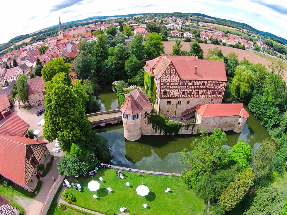 Das Wasserschloss Unsleben ist seit Jahrhunderten Heimat und seit dem Jahr 2000 auch wieder Wohnort von Graf Christoph zu Waldburg Wolfegg und seiner Familie, die mit euch liebevoll eure Hochzeit planen.