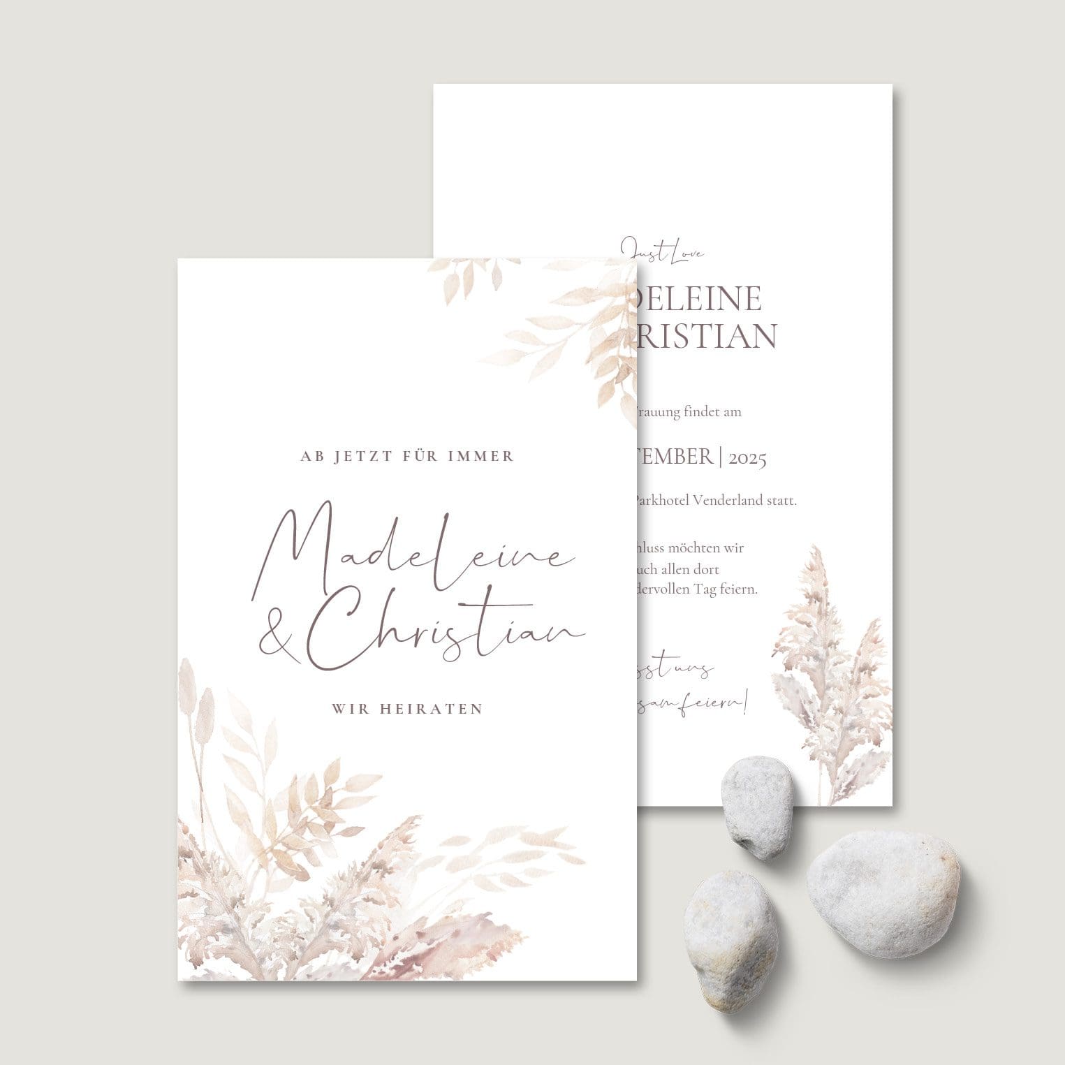 5 | Boho Hochzeitseinladungen mit Pampasgras oder Trockenblumen-Elementen