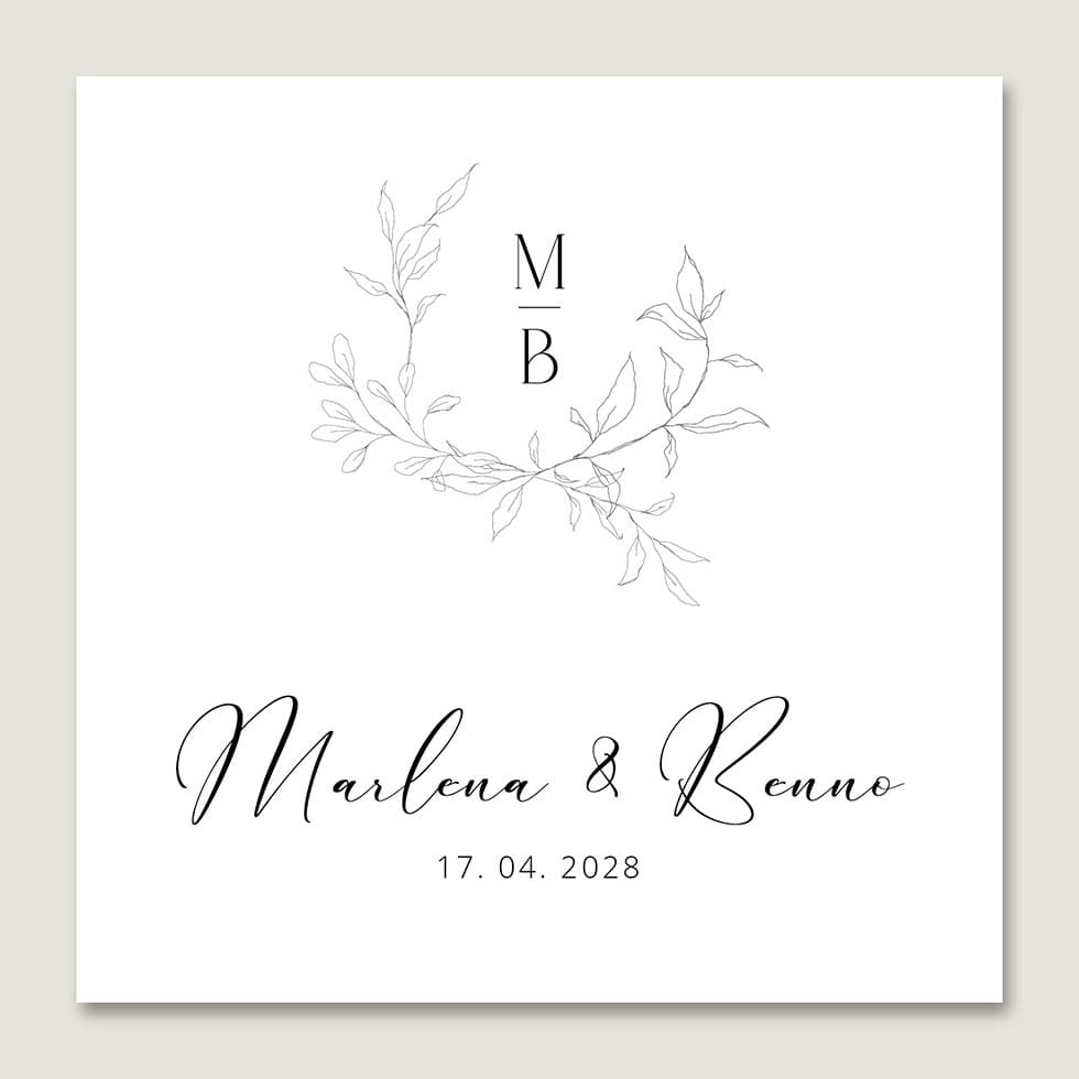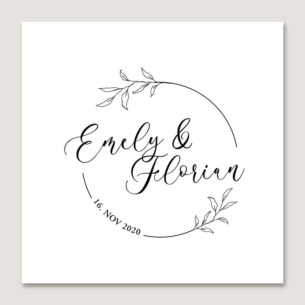 Wollt ihr eure Einladungen selbst gestalten, könnt ihr den Text zum Beispiel in Word gestalten und dann das Logo als Grafik ergänzen. Mit unseren Logo-Designs ist das gar kein Problem und ihr könnt das Design sogar für alle weiteren Karten und Details bei eurer Hochzeit verwenden.