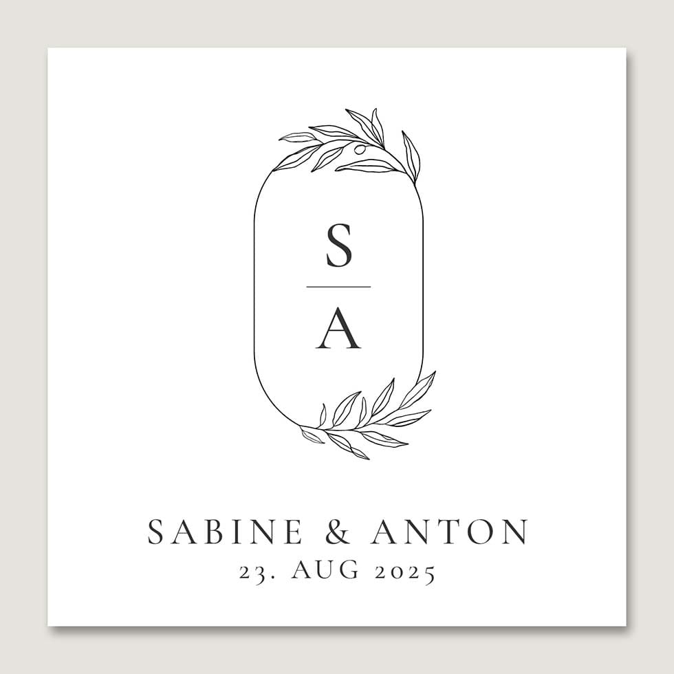 Karten mit individuellen Hochzeitslogos von puristisch bis verspielt sind ein echtes Highlight, weil sie euren besonderen Stil ausdrücken und nicht an jeder Ecke erhältlich sind.