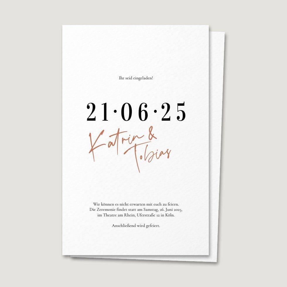 Der Hit für Boho Hochzeitseinladungen sind Einladungskarten, die mit modernen Schriften gestaltet sind. Auch sehr puristische, klassische Designs werden immer beliebter.