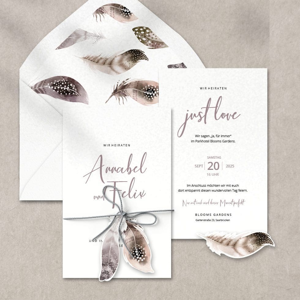 Gestaltungsoptionen für Boho Hochzeitskarten