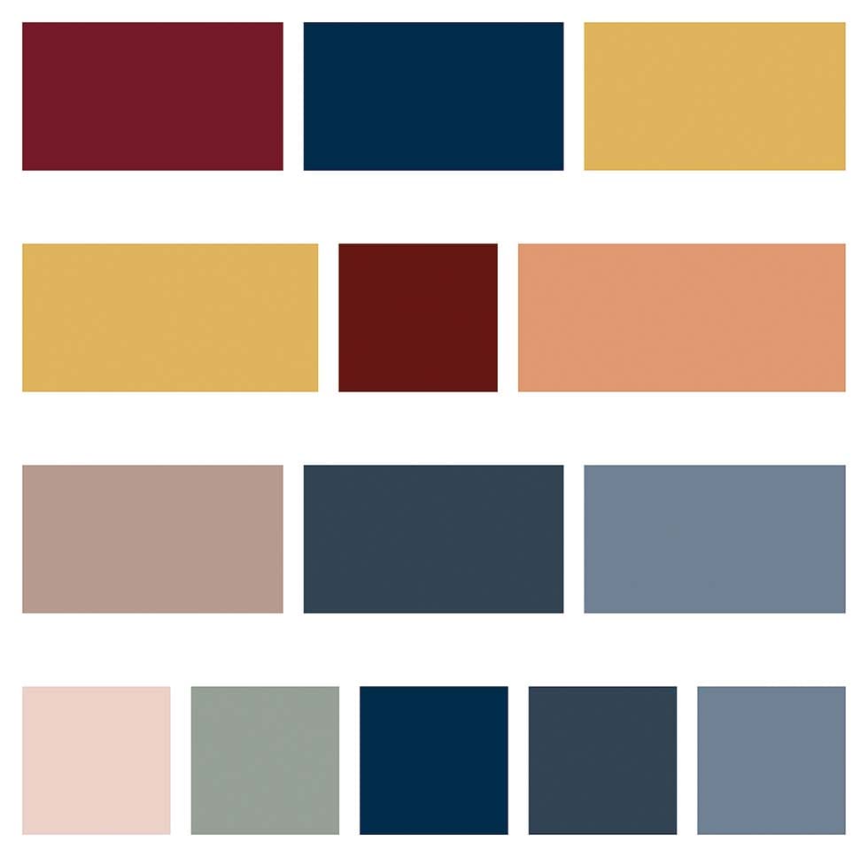 Dunkelblau, Grau, Zartgelb, Salbei, Smaragd, Gold, Dusty Rose