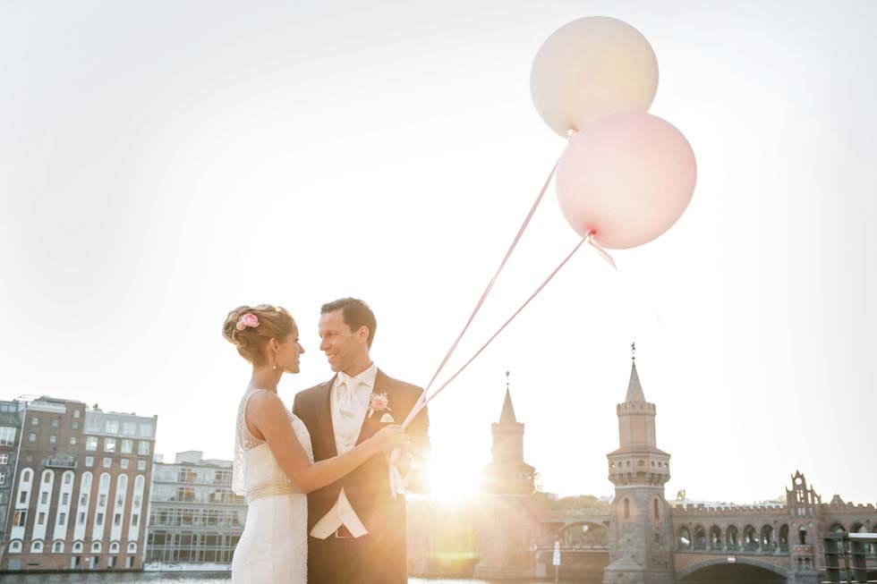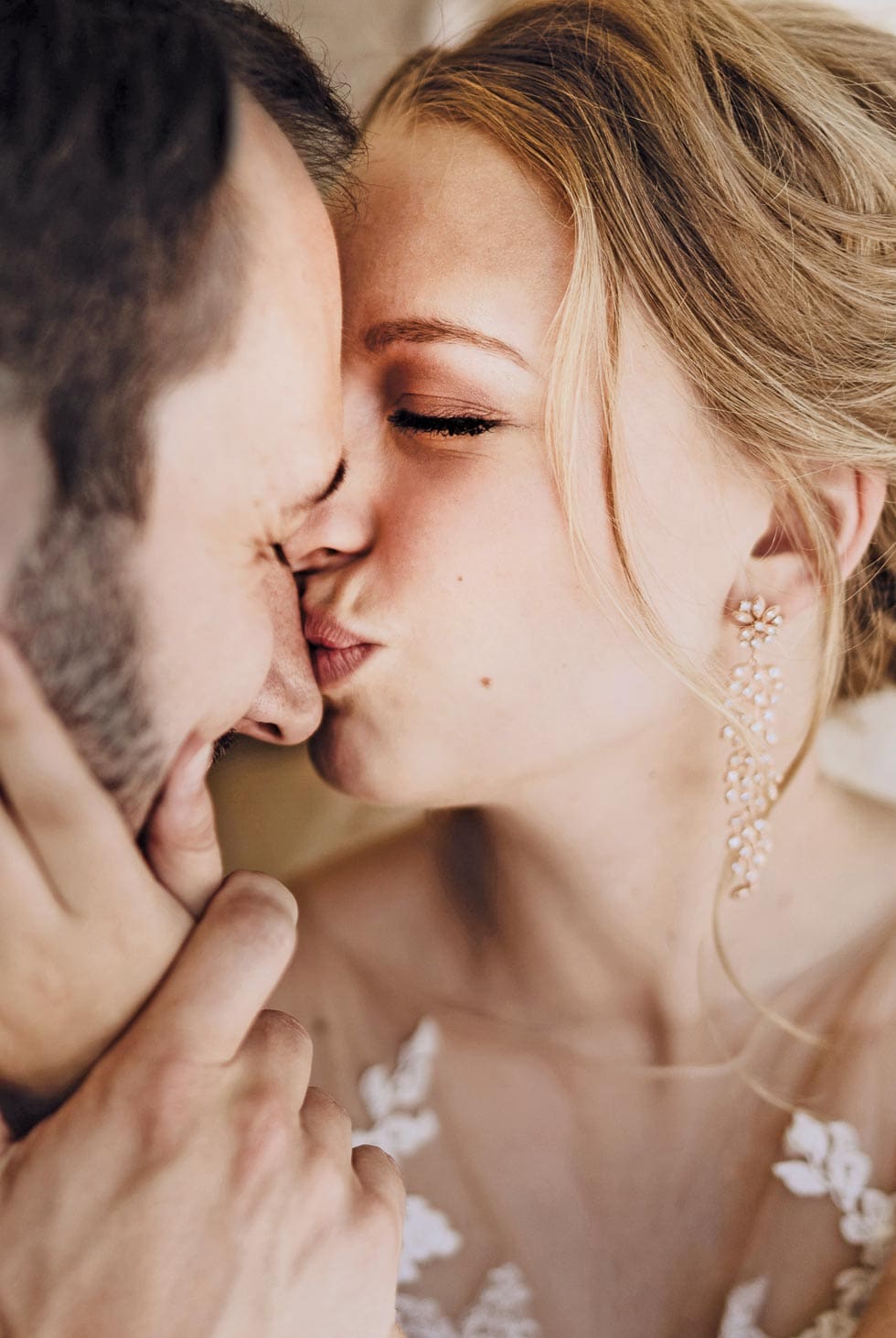 Bei Hochzeitsfotos gibt es zwei Fotostile für Portraits: Emotionale Portraitaufnahmen, die das Paar und seine Persönlichkeit zeigen oder künstlerische, gestellte Fotoaufnahmen (zum Beispiel mit atemberaubenden Lichteffekt bei Nacht).