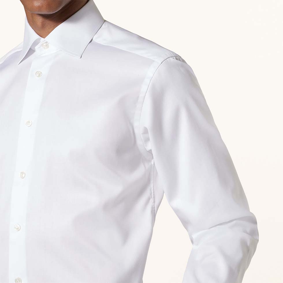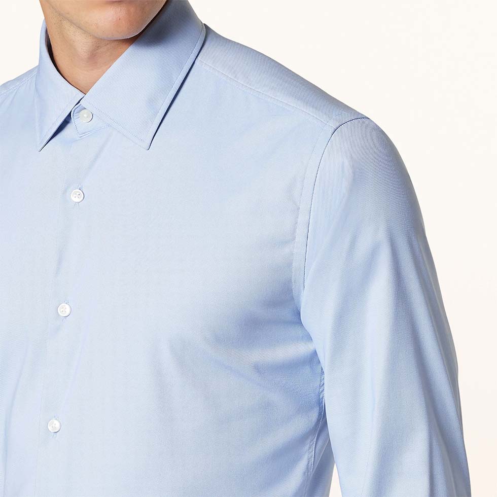 Wählt am besten ein blickdichtes Hemd – zum Beispiel in Twill-Webart oder ein leichtes Hemd aus feiner Baumwollpopeline.