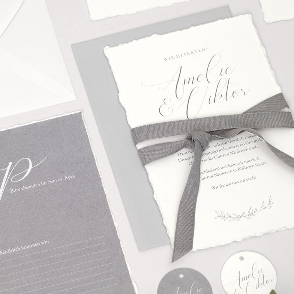 Besonders schön sind Hochzeitskarten, die in einem einheitlichen Design von der Einladung bis zur Dankeskarte passend zu eurem Hochzeitskonzept individuell gestaltet werden.