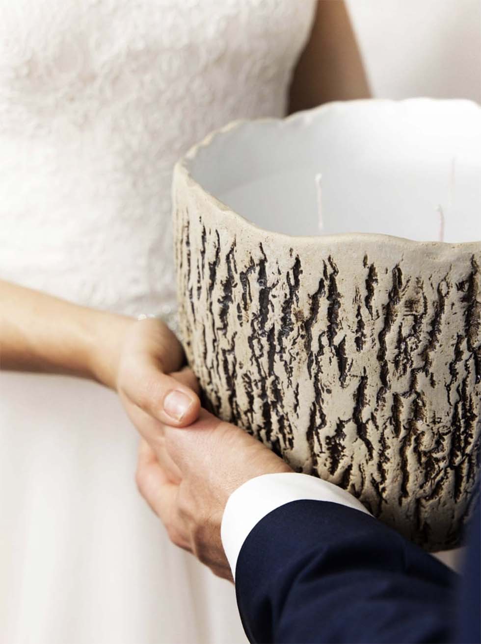 Die Flamme einer Hochzeitskerze symbolisiert die Leidenschaft, Wärme und das Licht eurer tiefen Verbindung zueinander. Entflammt ihr sie bei eurer Trauung wird ihr Licht euch – wann immer ihr es braucht – daran erinnern was ihr euch an eurer Hochzeit versprochen habt: Für immer und ewig in Liebe vereint zu sein.