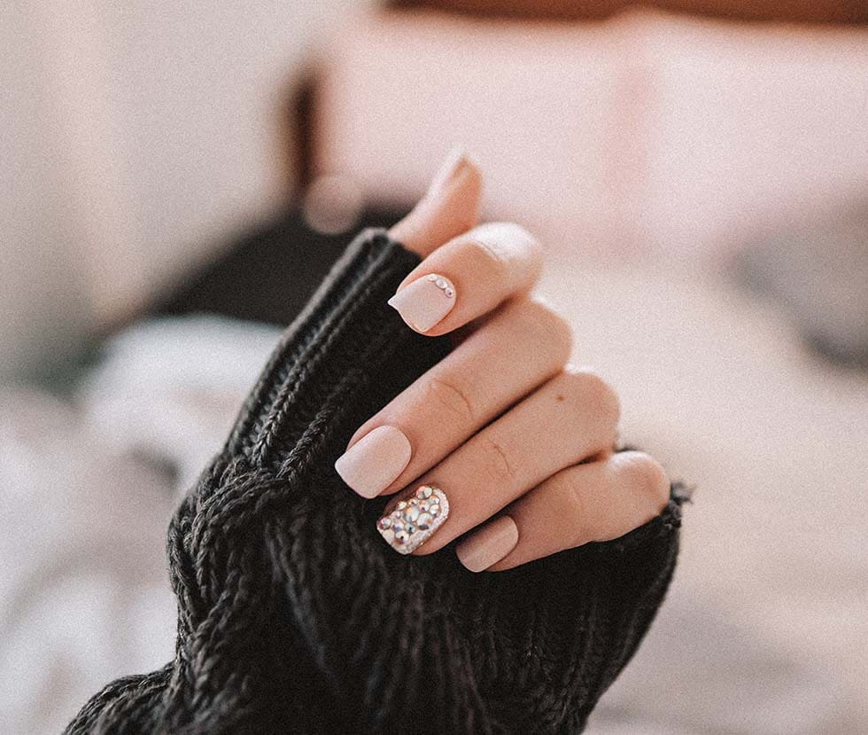 Lackiert, aber ganz natürlich wirken Nageldesigns für die Hochzeit mit Nude Farben. Deshalb sind sie absolut unkompliziert umzusetzen und sind auch mit verschiedenen Details ergänzbar.