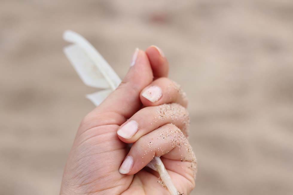 Nachdem die Nägel getrocknet sind, können sie gefeilt werden. Hierbei mit der Feile im 45°-Winkel von unten immer in eine Richtung feilen, damit die Nägel nicht beschädigt werden.