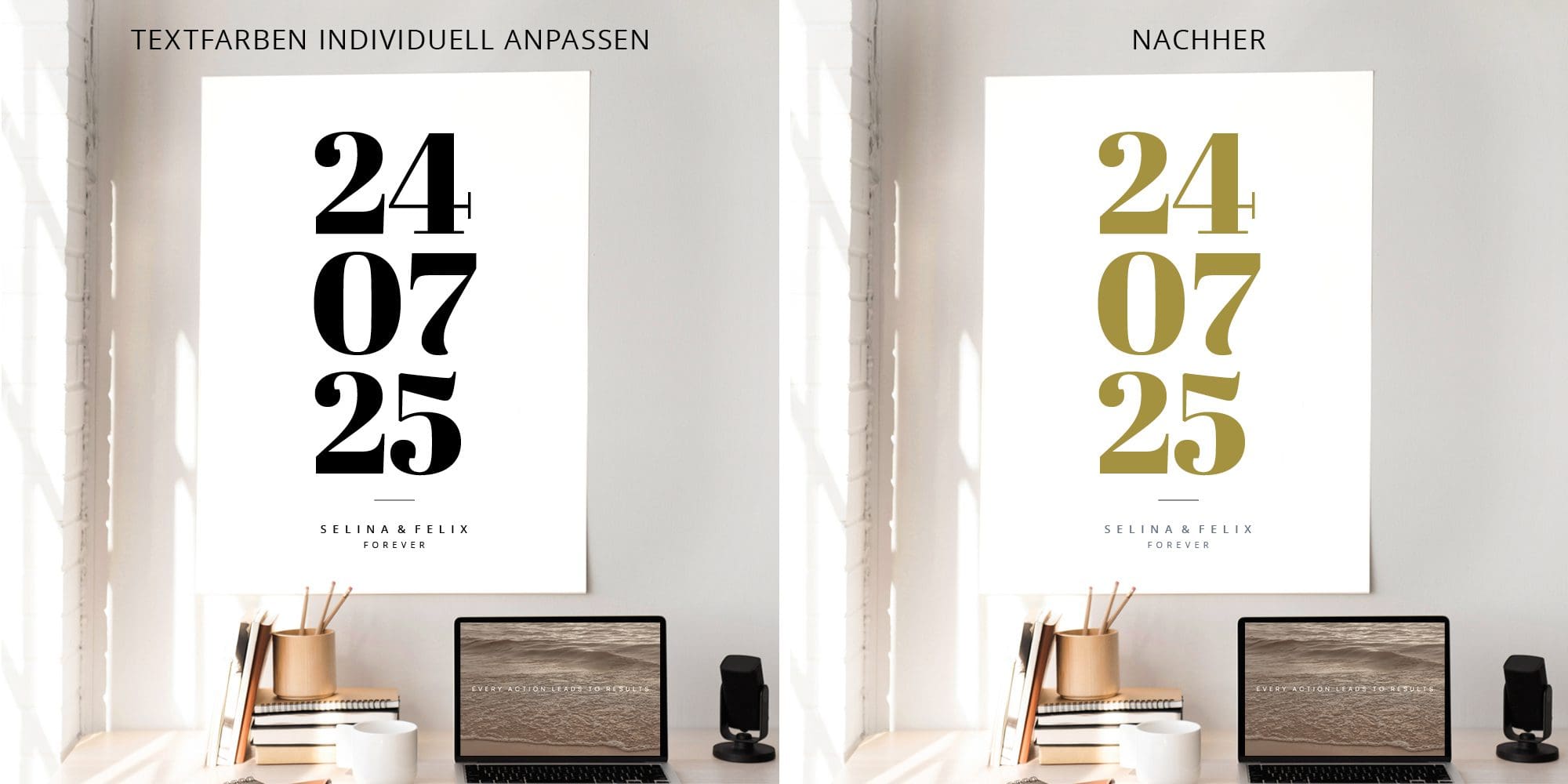 So werdet ihr ganz einfach selbst zum Poster-Designer und erhaltet ein Hochzeitsposter, das perfekt zur Einrichtung passt.