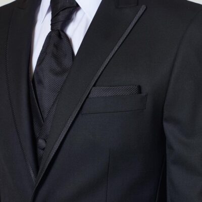 Zu einem dunkelblauen Smoking könnt ihr wählen, ob ihr schwarze oder dunkelblaue Schuhe tragen möchtet.