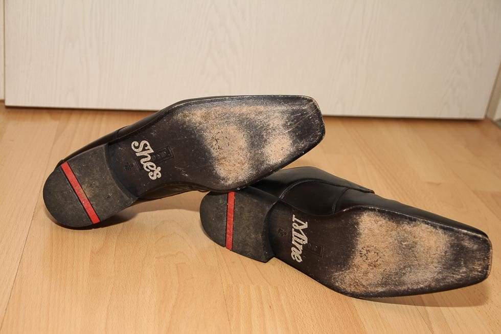 - Tragt eure neuen Schuhe vor der Hochzeit ein paar Mal Zuhause oder in den letzten Unterrichtsstunden in der Tanzschule. So könnt ihr sie perfekt einlaufen und die Füße das Leder etwas 'formen'.