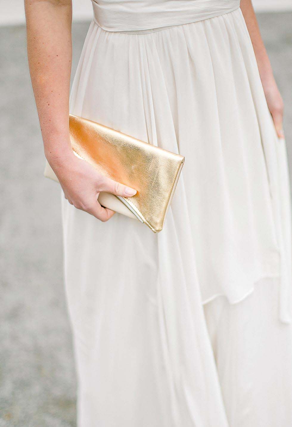 Viele Bräute entscheiden sich dafür, für den Abend ein zweites bequemeres Outfit zu besorgen, wie zum Beispiel ein kurzes Kleid oder einen Hosenanzug. Dieses Outfit könnt ihr übrigens auch toll zur standesamtlichen Hochzeit tragen.