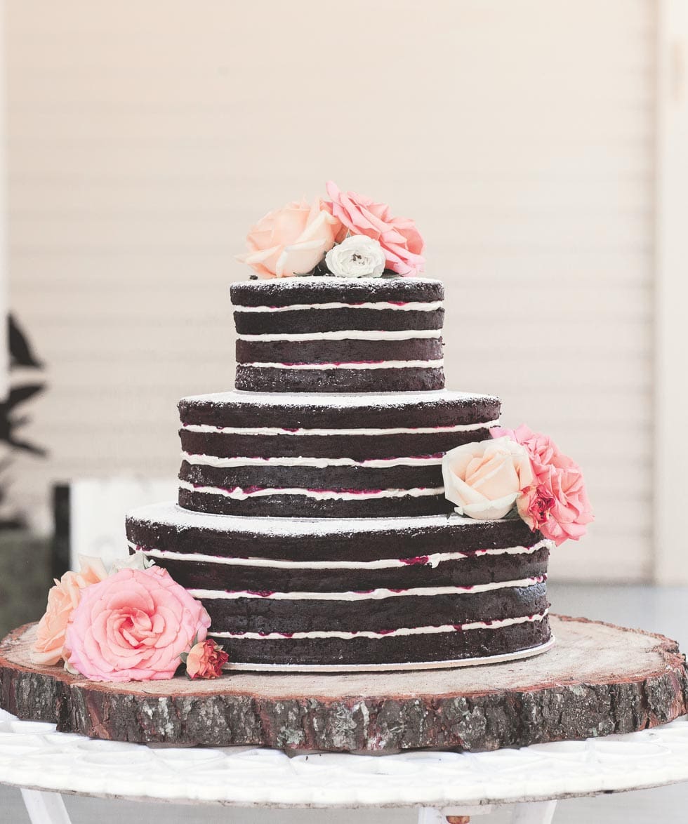 Ob mit hellem oder dunklen Biskuit hergestellt – bei Naked Cakes wird an der Seite komplett auf Creme verzichtet, weshalb sie die schlanke Hochzeitstorte-Variante sind.
